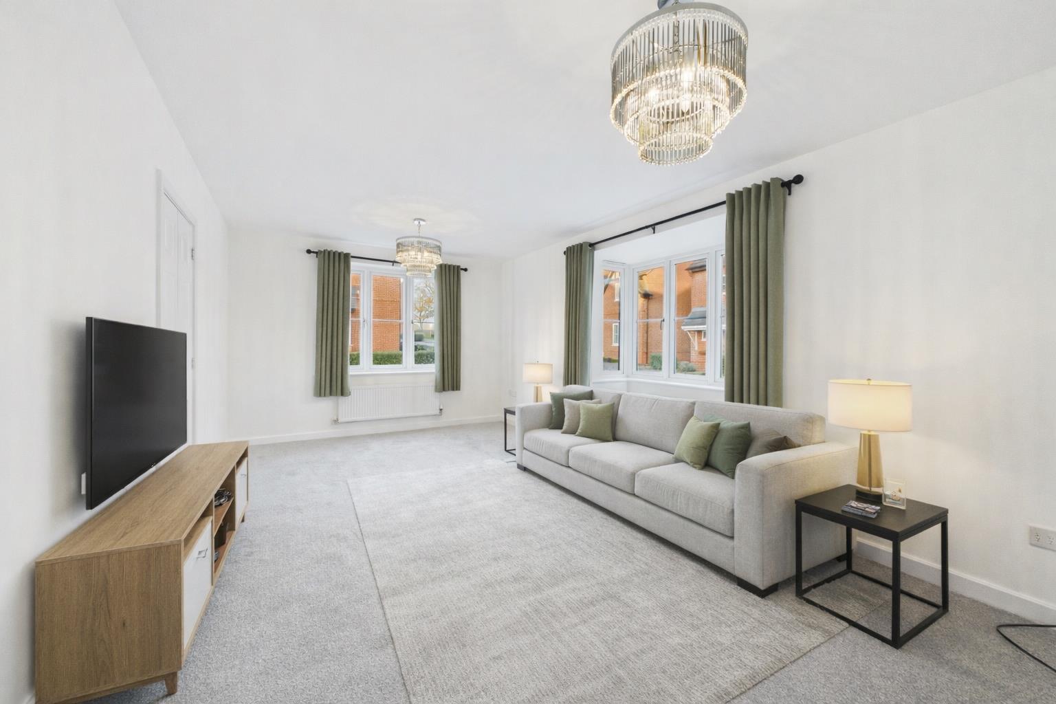 To the left is the living room a well-proportioned and bright space, enhanced by a bay window allowing plenty of natural light to flood the room, making it ideal for relaxing or entertaining.