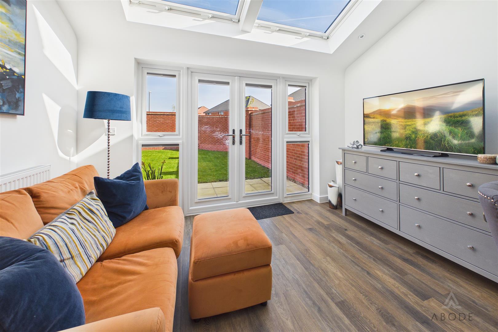The accommodation briefly comprises an inviting entrance hallway, guest cloakroom, and a comfortable lounge with a striking bay window and double doors opening onto the garden. The high-specification fitted kitchen includes a breakfast bar and flows seamlessly into a bright living/dining area, also with access to the garden.