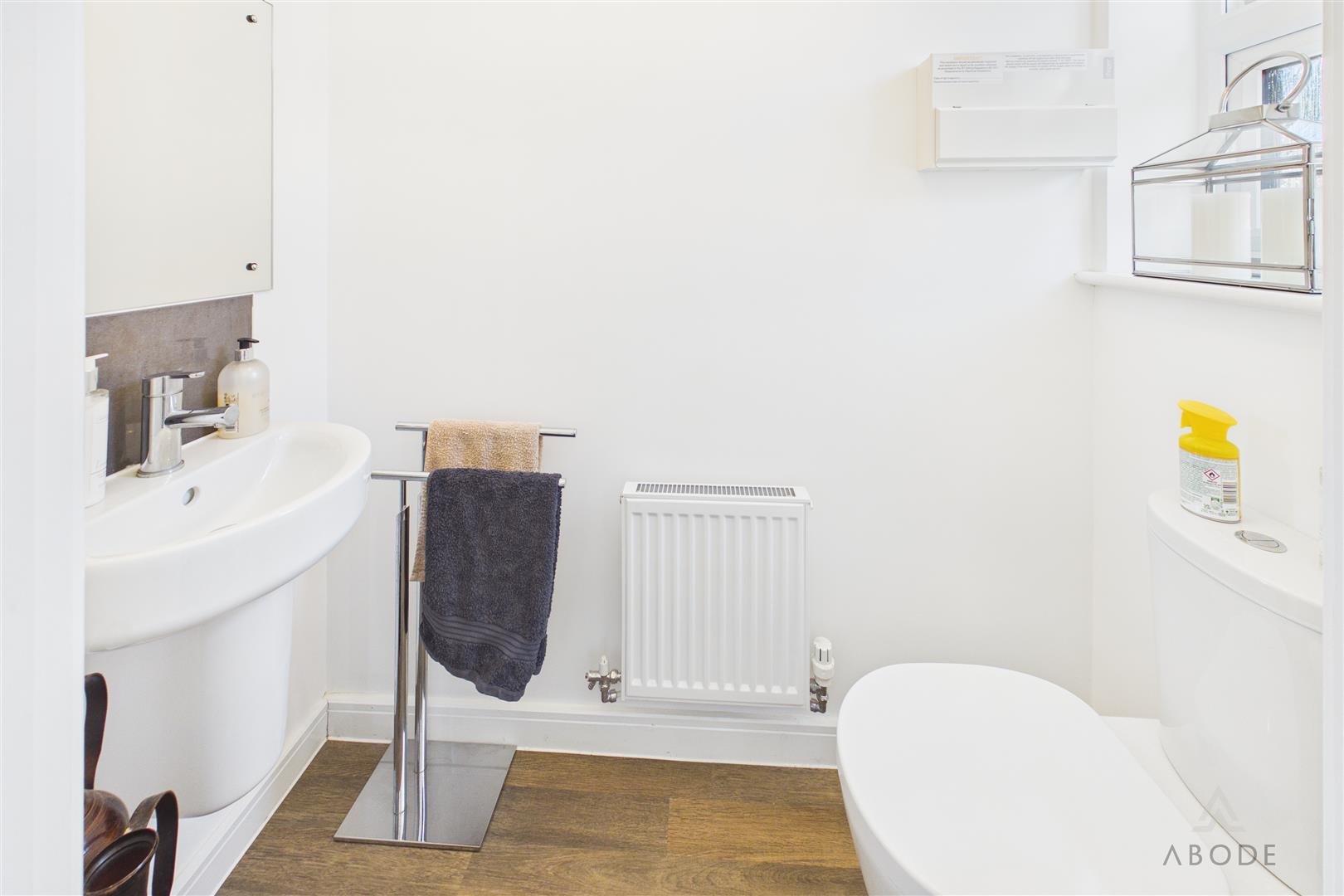 Low flush wc, wash hand basin, radiator and upvc double glazed window.