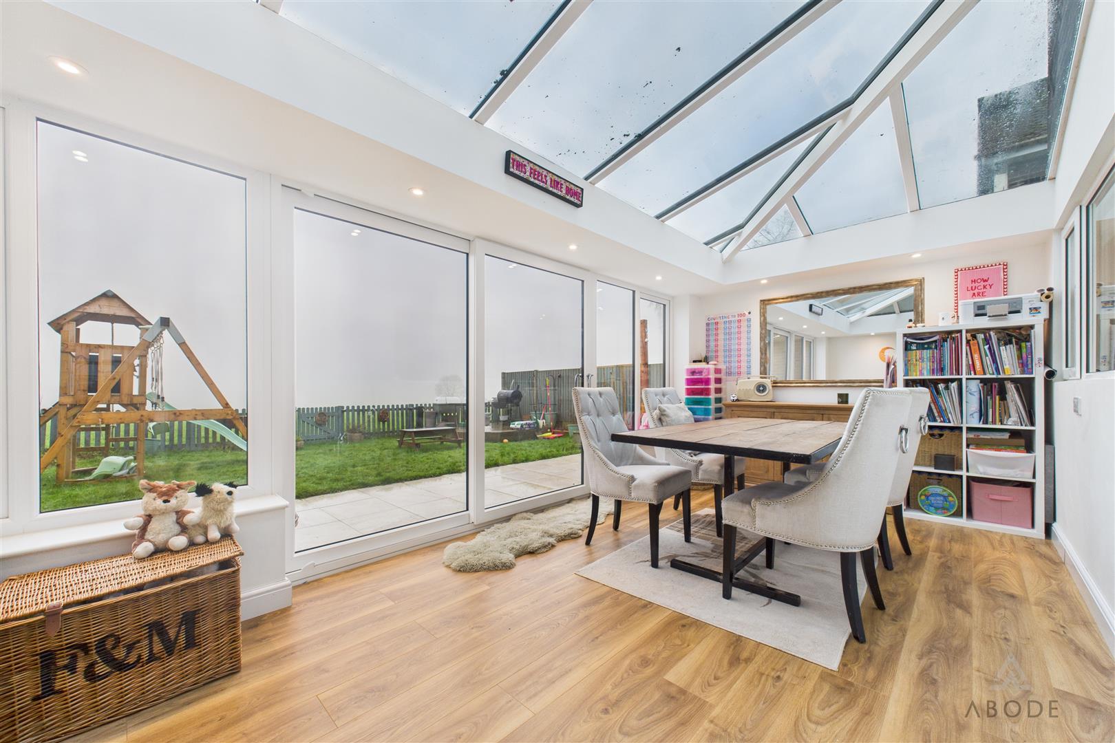 The property features a cosy lounge with log-burning fireplace, a welcoming entrance hallway, side hallway with internal access to the garage, a versatile study, utility room, and ground floor cloakroom. A single-storey rear extension further enhances the living space, maximising the outlook over the surrounding open landscape.