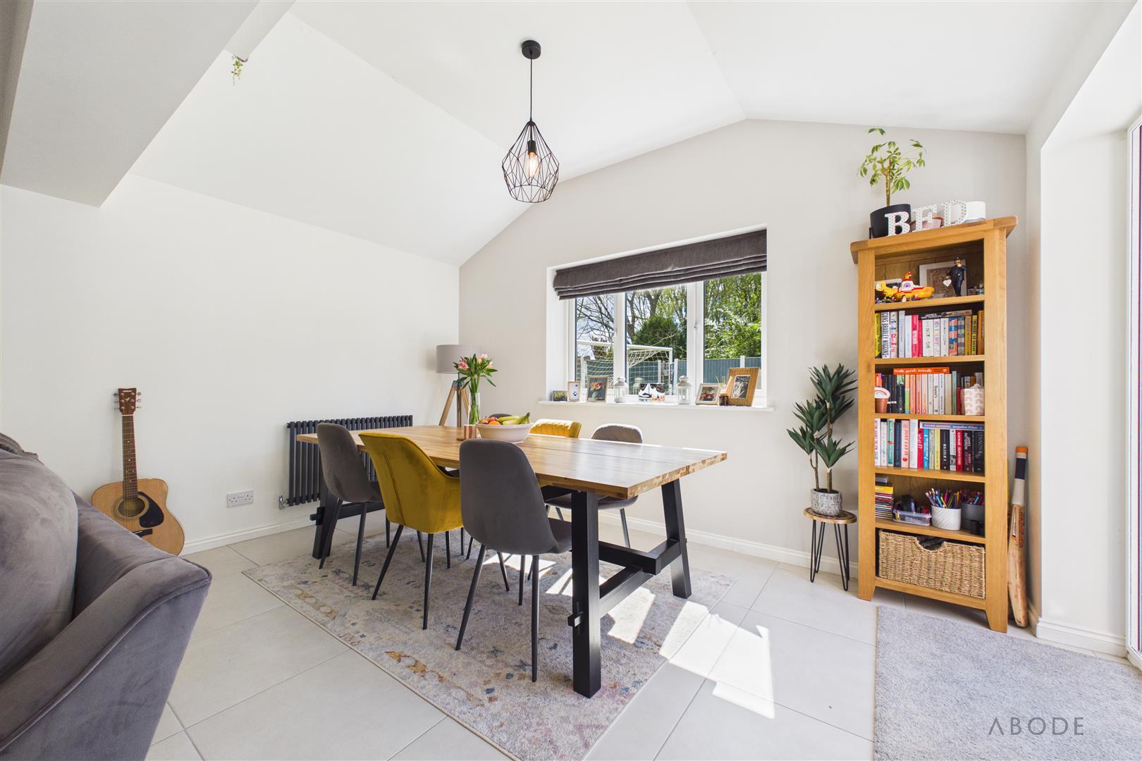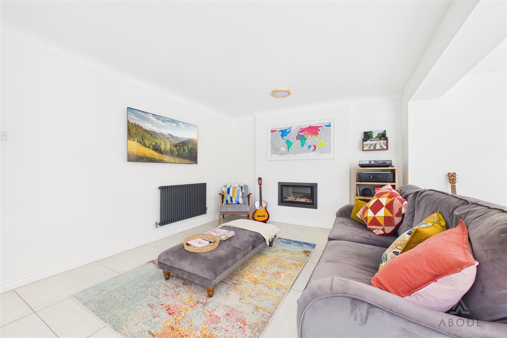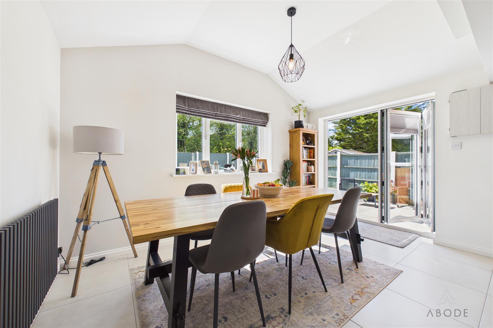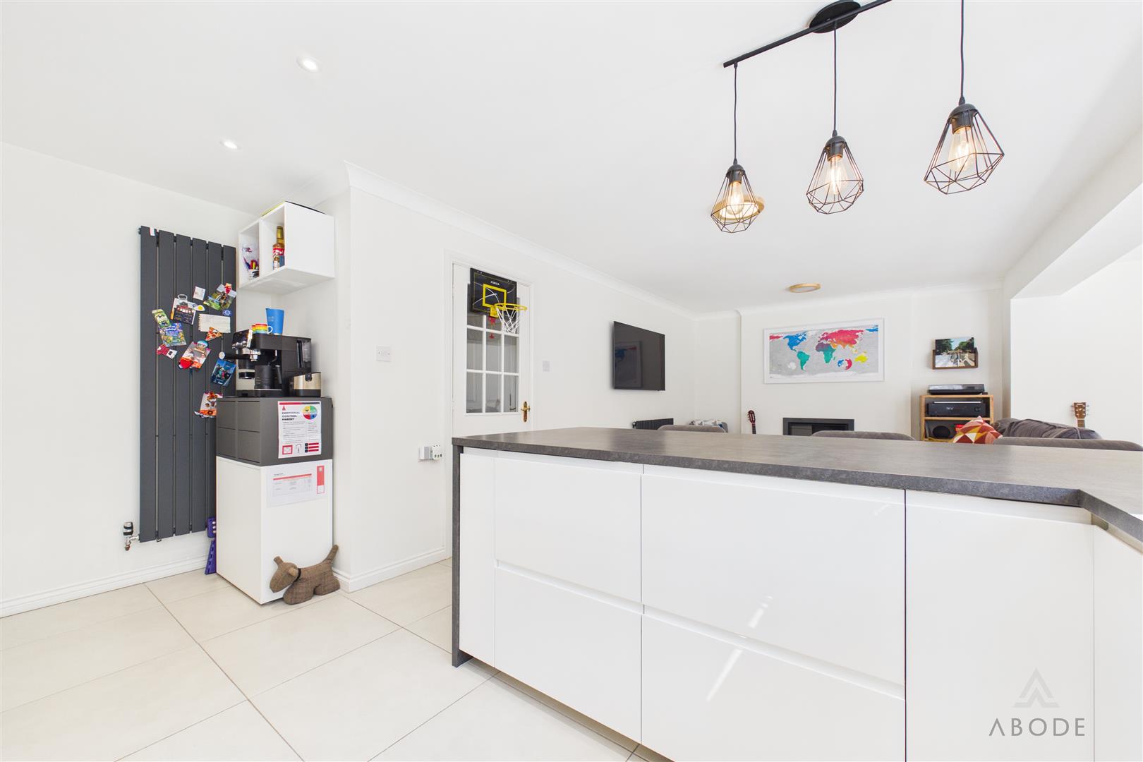 The property briefly comprises a welcoming entrance hallway, guest cloakroom, a versatile family room, and an impressive, extended open-plan kitchen/dining/living area forming the heart of the home—perfect for both everyday living and entertaining. The contemporary kitchen features high-gloss units and integrated appliances, with the living and dining areas enhanced by bi-fold doors opening onto the low maintenance garden.