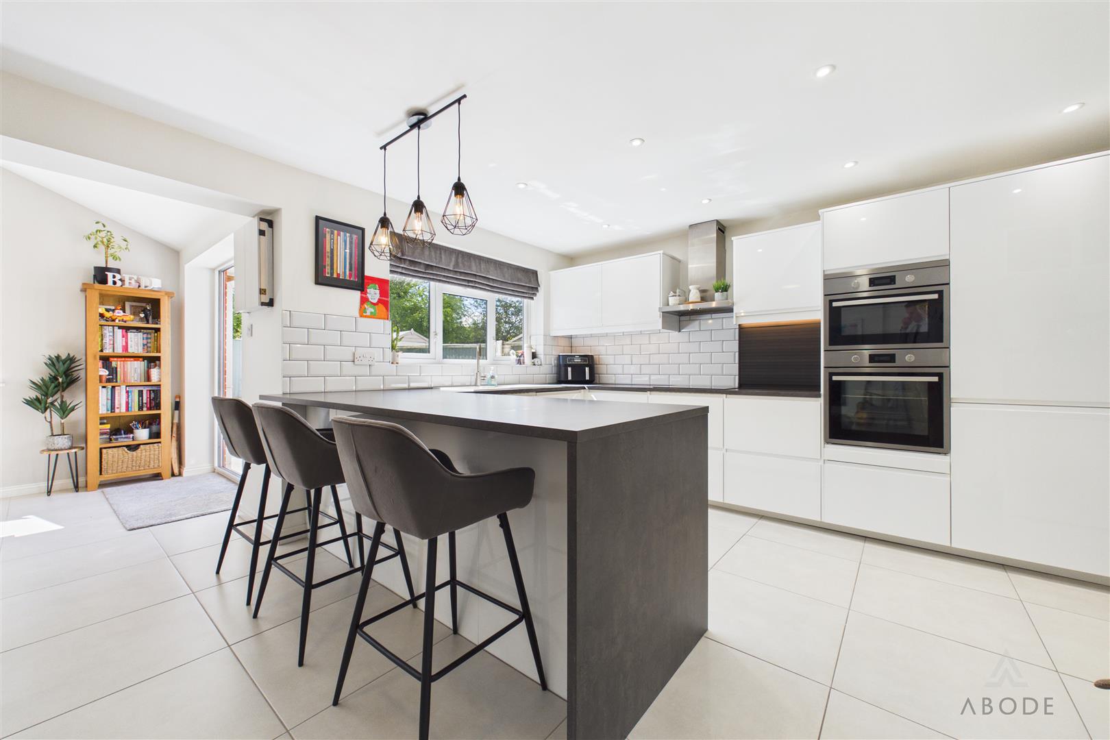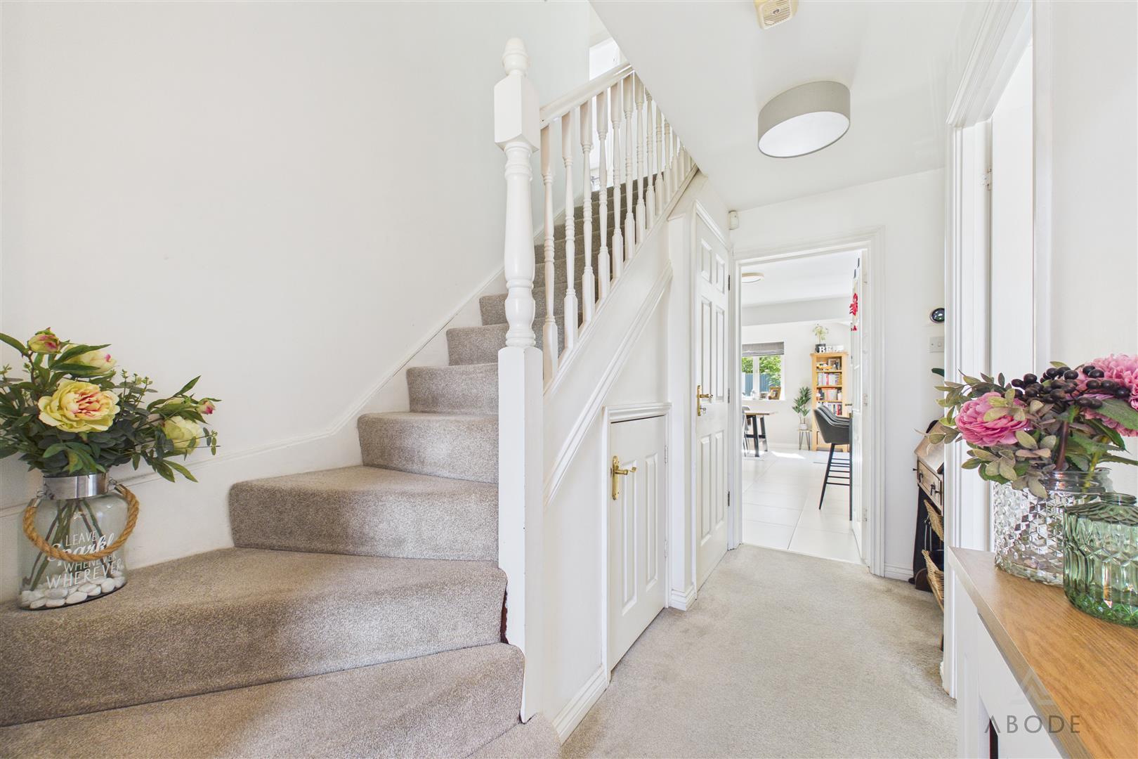 To the first floor are four well-proportioned bedrooms, including a generous principal bedroom with fitted wardrobes and en suite, alongside a modern family bathroom.