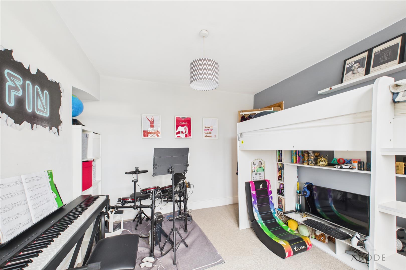 The first-floor landing provides access to three well-proportioned bedrooms and the family bathroom. The main bedroom is a generous double room with a rear-facing window and space for freestanding furniture. Bedroom two is also a comfortable double, while the third bedroom is ideal for use as a child’s room, home office or nursery.