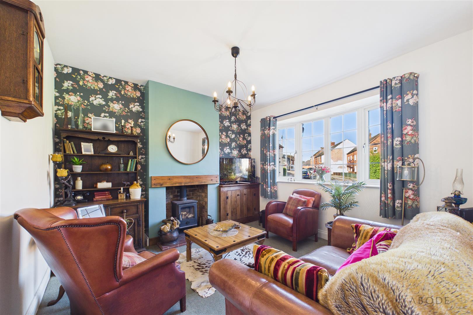 The accommodation is entered via a front entrance door leading into a welcoming hallway, with stairs rising to the first floor and doors providing access to the main living spaces. The living room is positioned to the front aspect and offers a warm and inviting space, featuring a log-burning stove set within a chimney breast, creating a focal point to the room, along with a large window allowing for plenty of natural light.