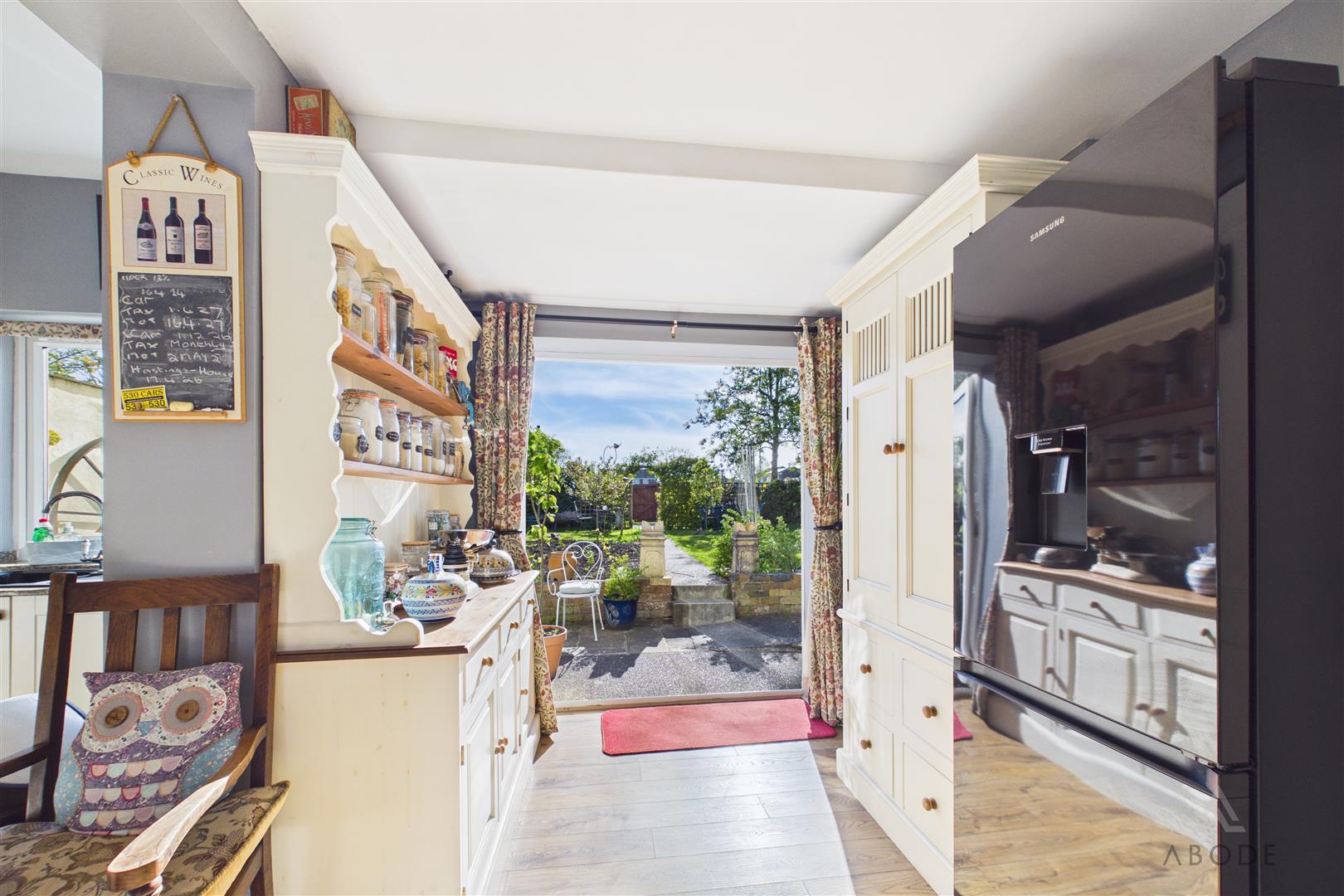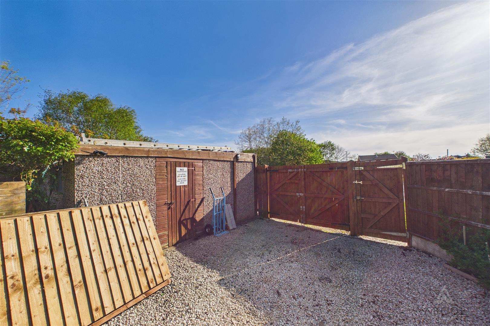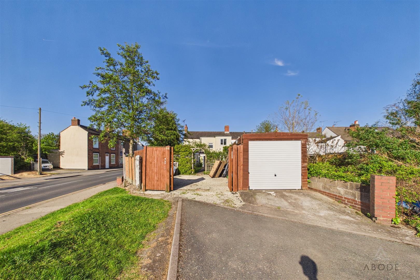 To the rear of the garden, there is access to a detached garage, along with a gravelled area providing off-street parking, accessed via timber gates—an invaluable feature for a property in this central village position.