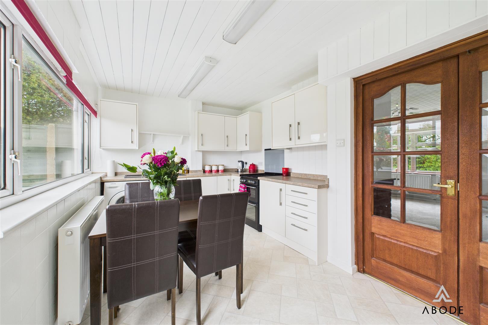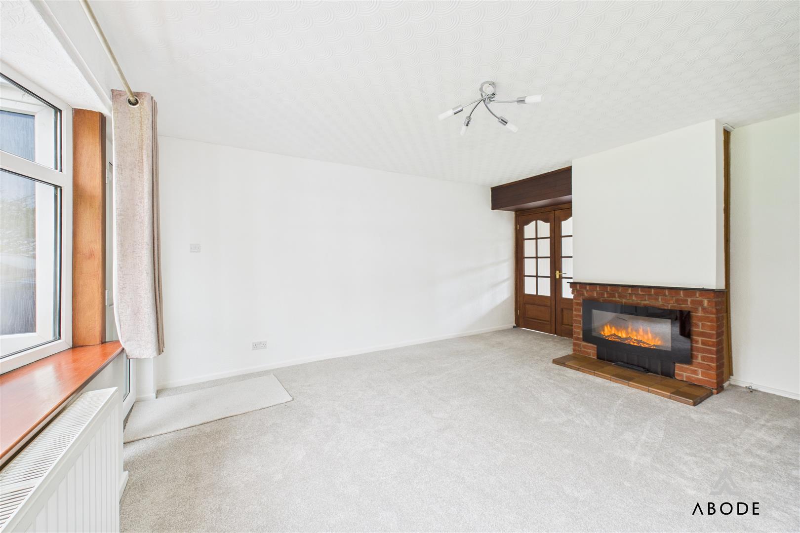 The property is entered through a porch leading into a bright and spacious living room, featuring a large double-glazed window to the front elevation, an electric fire with…