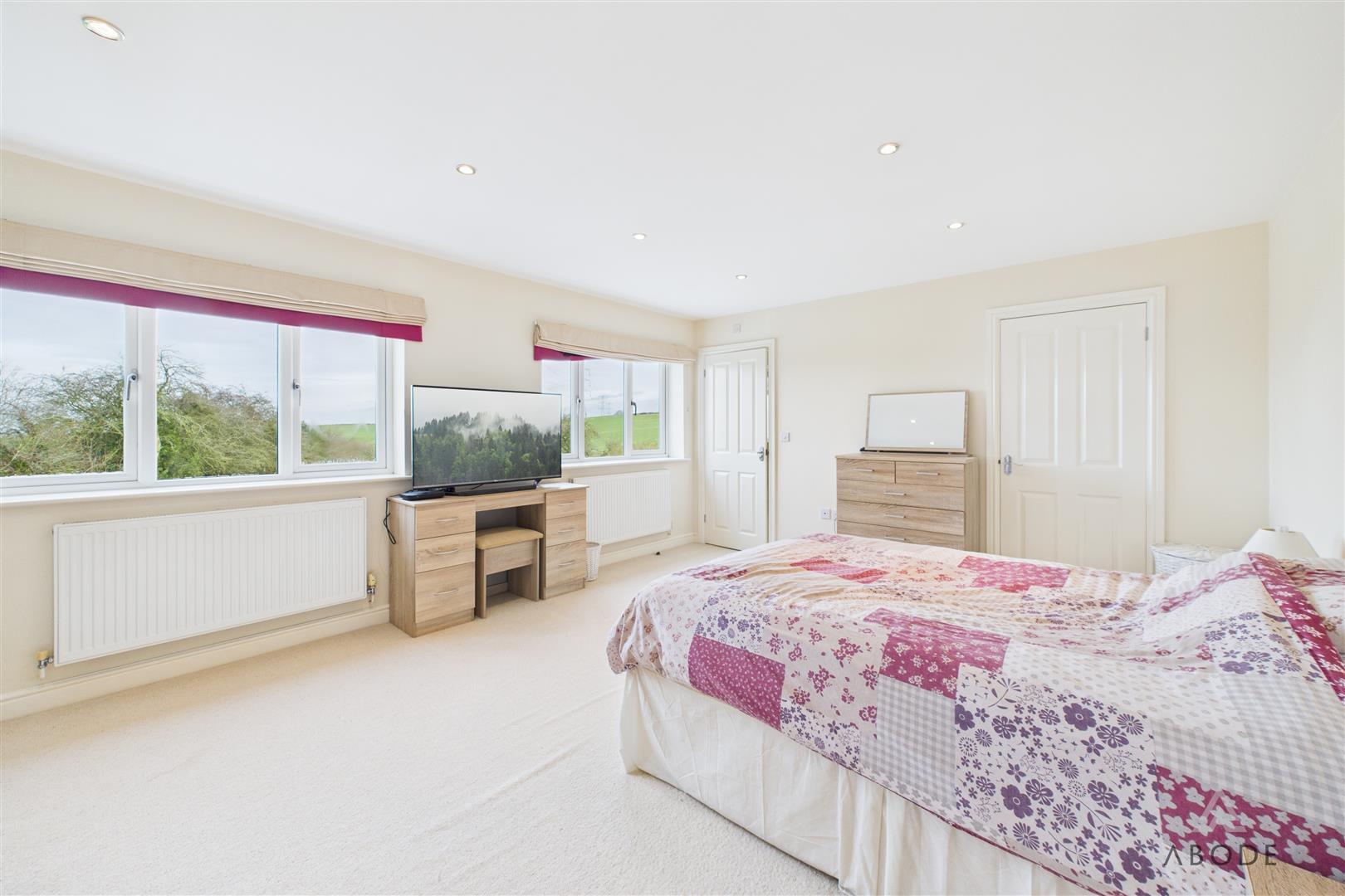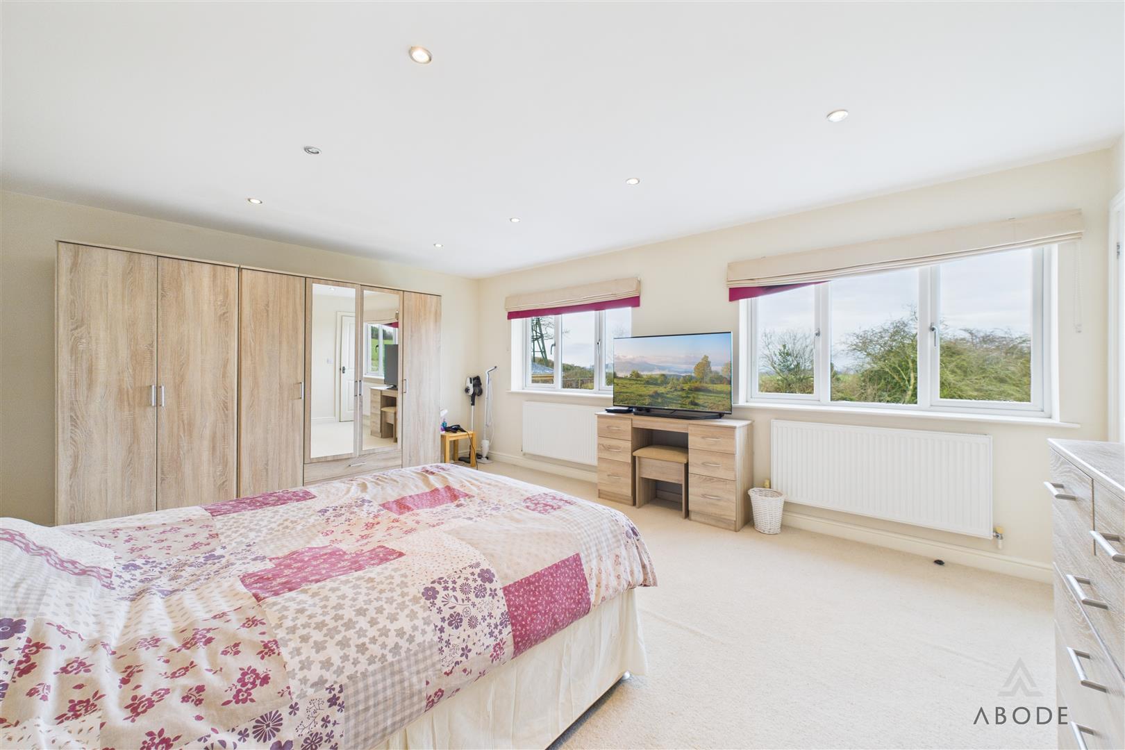 The principal bedroom is a standout space, enjoying open views to the rear over countryside, along with a dedicated en-suite shower room. Bedroom two is another generous double, also benefiting from open aspects, while bedrooms three and four are further well-sized doubles positioned to the front and rear respectively.