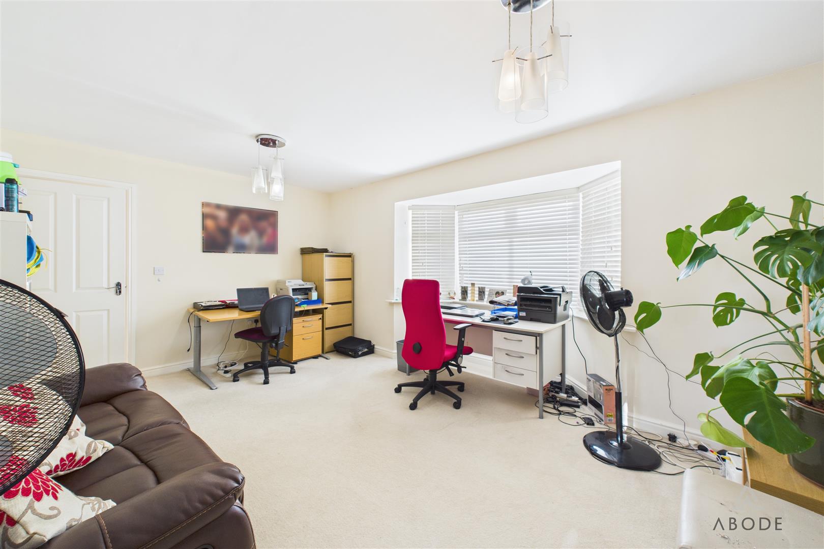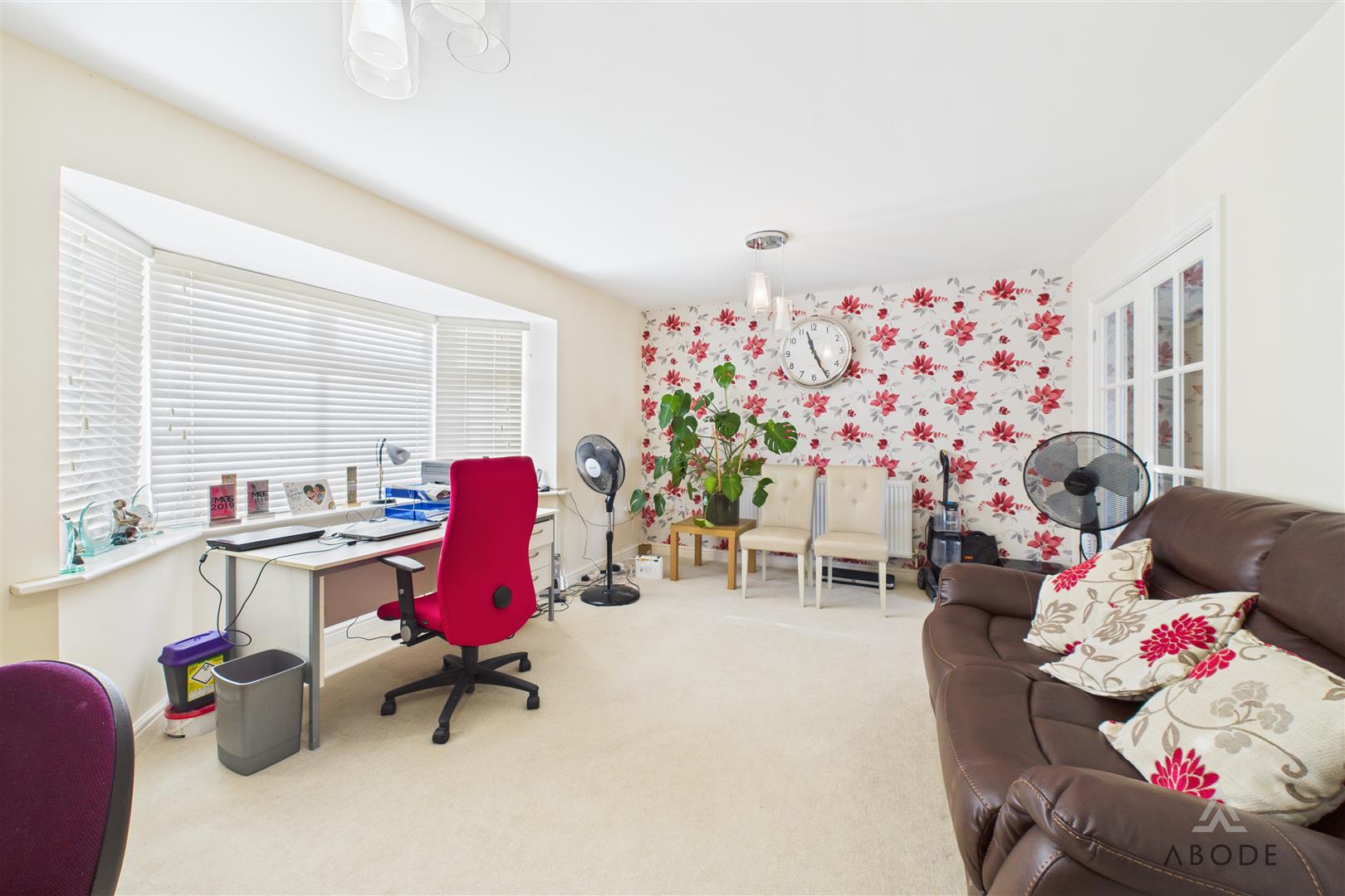 A separate dining room is situated to the front aspect, enjoying an open outlook and offering ample room for a large dining table, ideal for family meals and entertaining, currently used as a dual office.