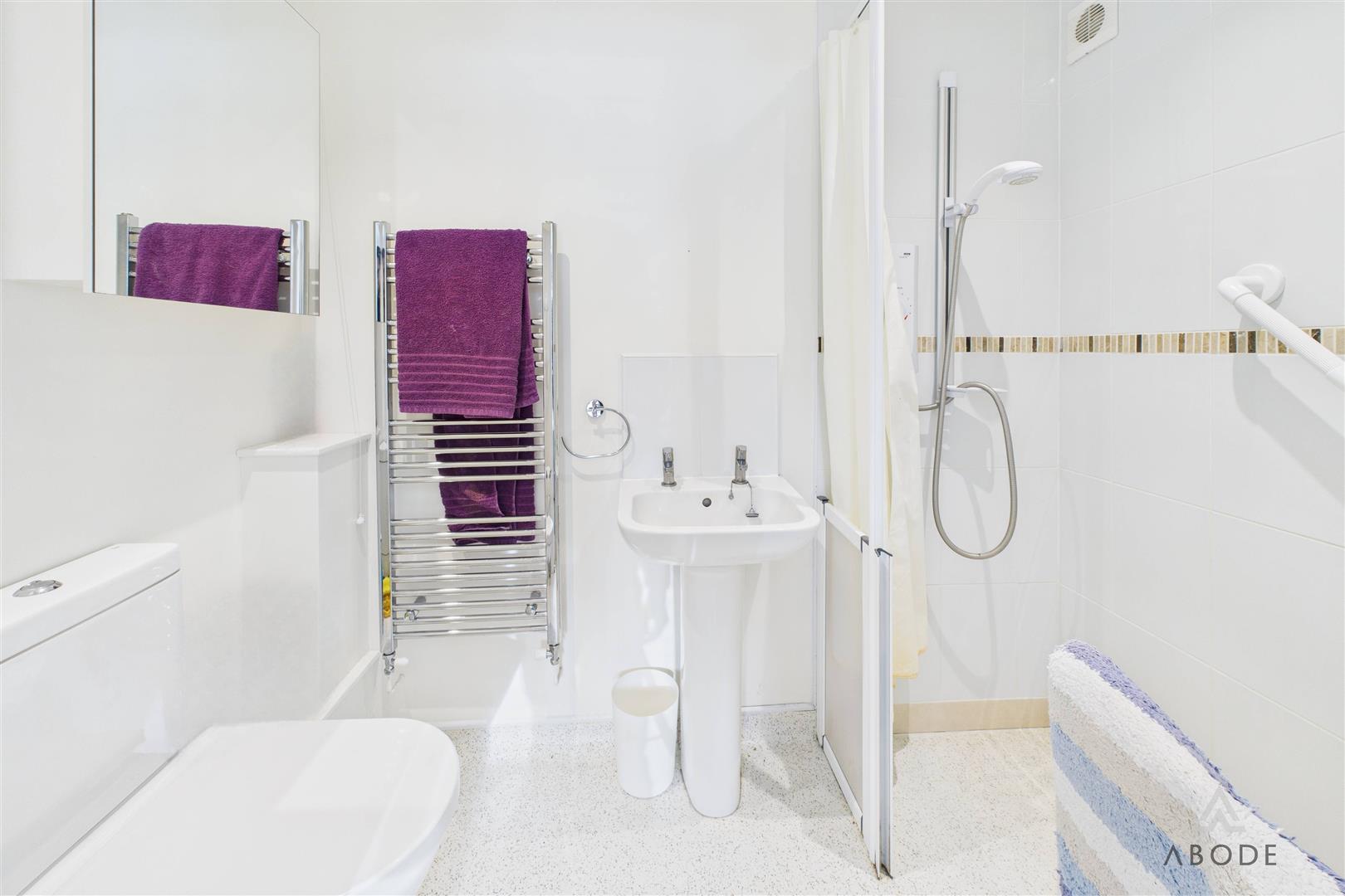 The family bathroom is fitted with a modern four-piece suite comprising a bath, separate shower enclosure, wash hand basin and WC, finished with tiled walls and flooring and designed to comfortably serve the upper floor accommodation.