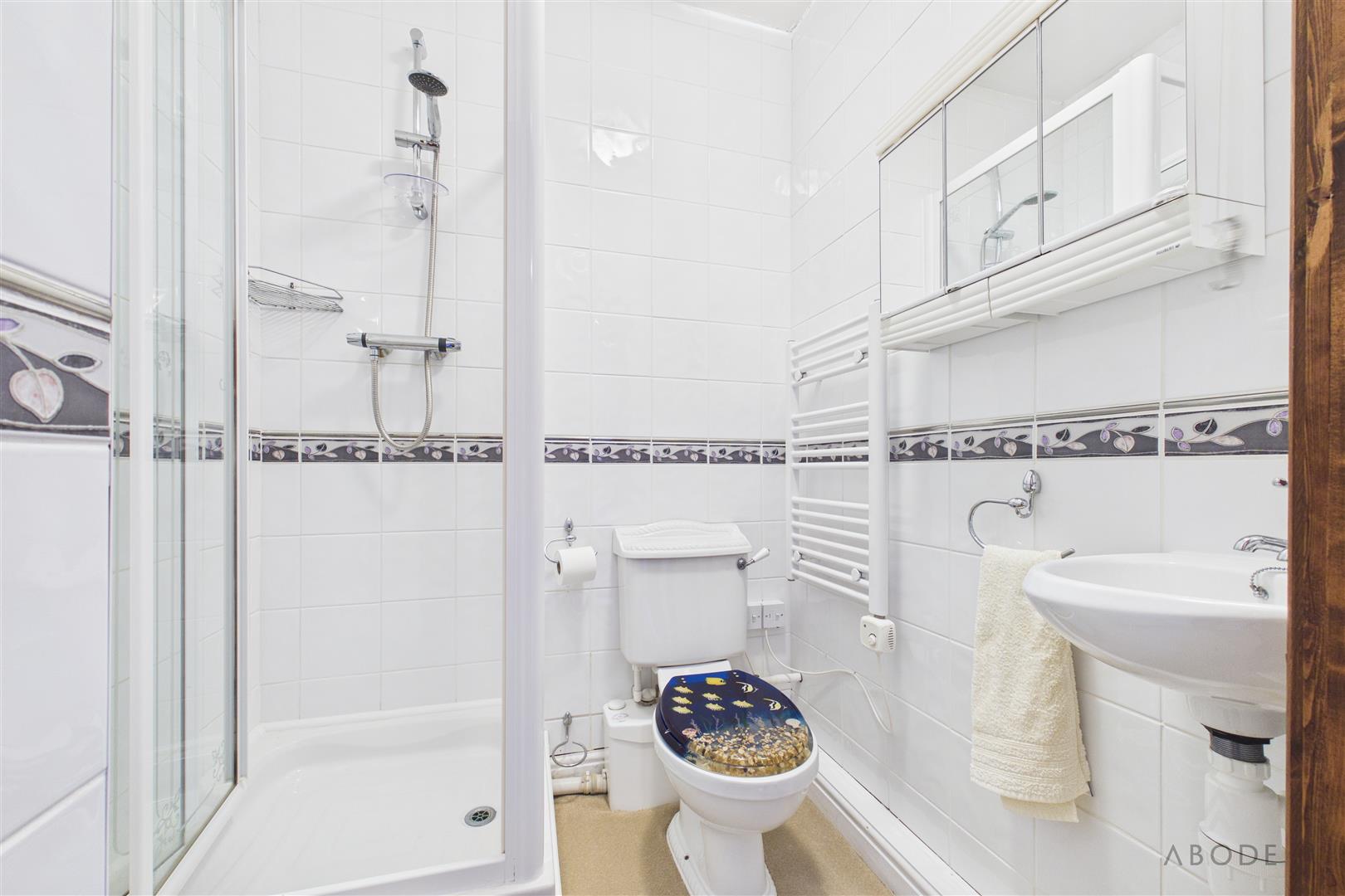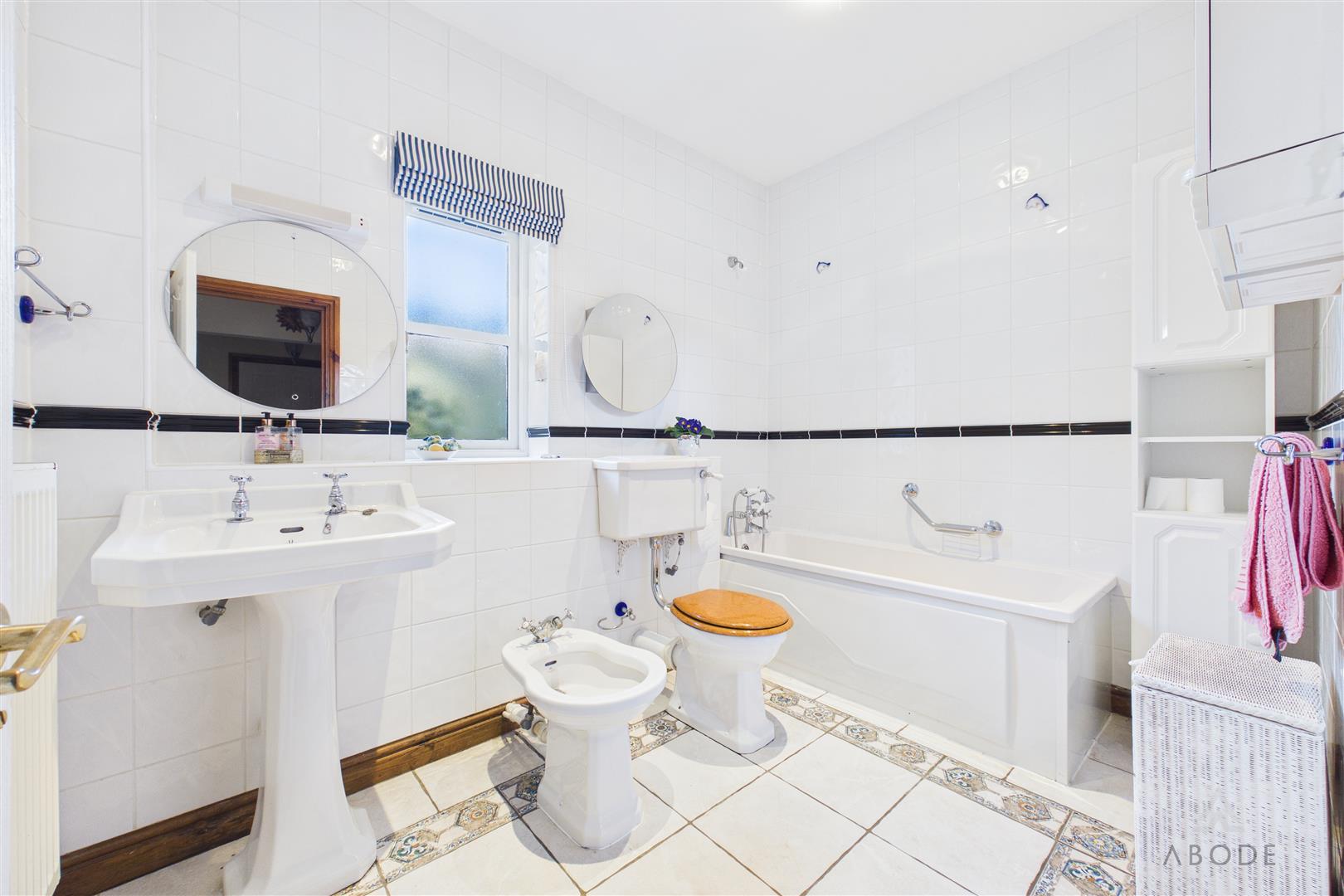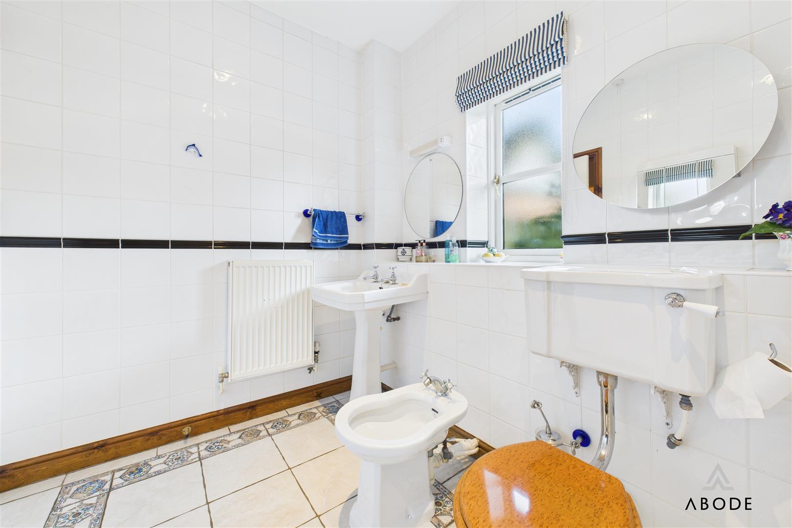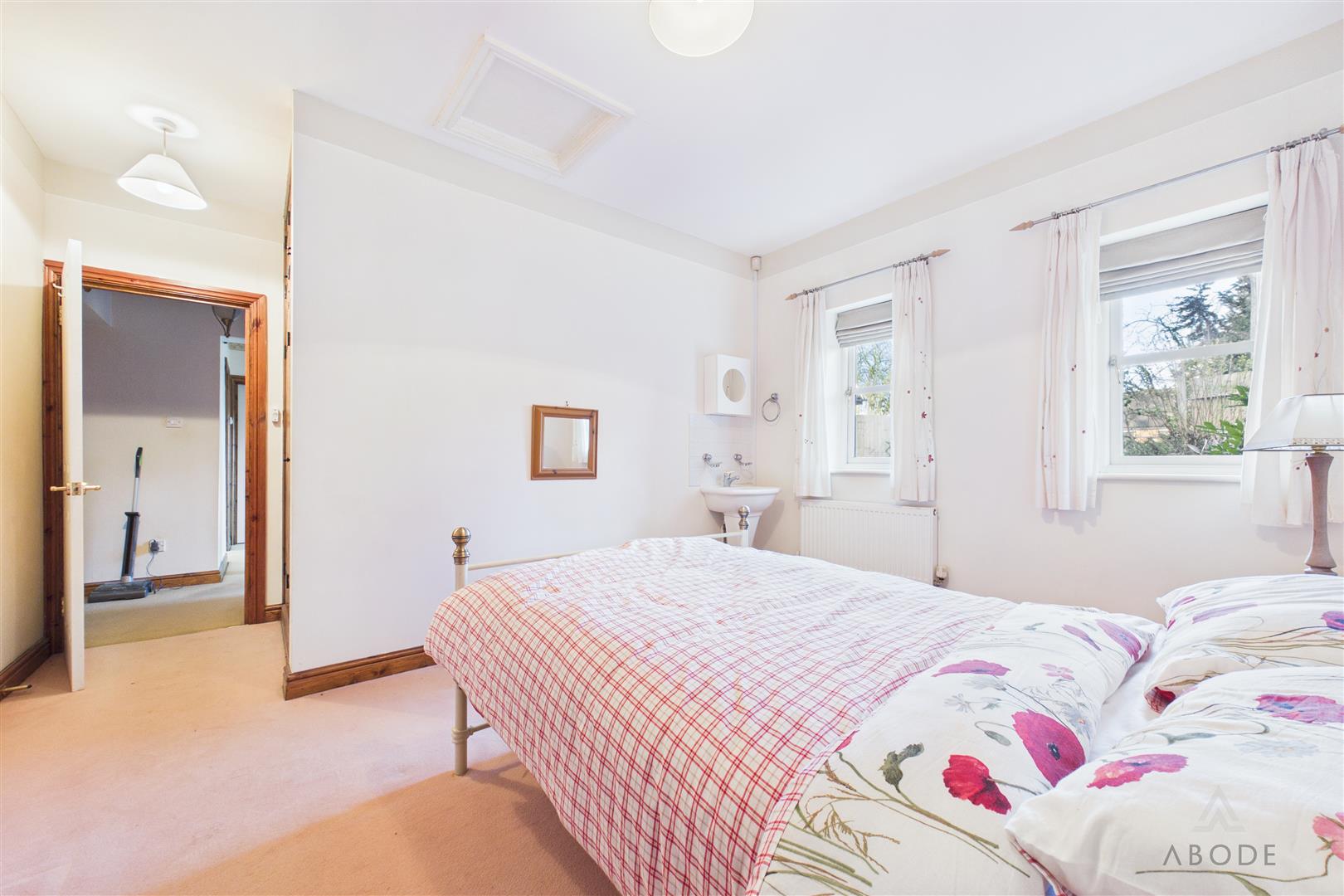 There are two double bedrooms, the principal benefiting from fitted wardrobes and an en suite shower room, with the second bedroom offering additional fitted storage and a wash basin. A generous four-piece family bathroom serves the home.