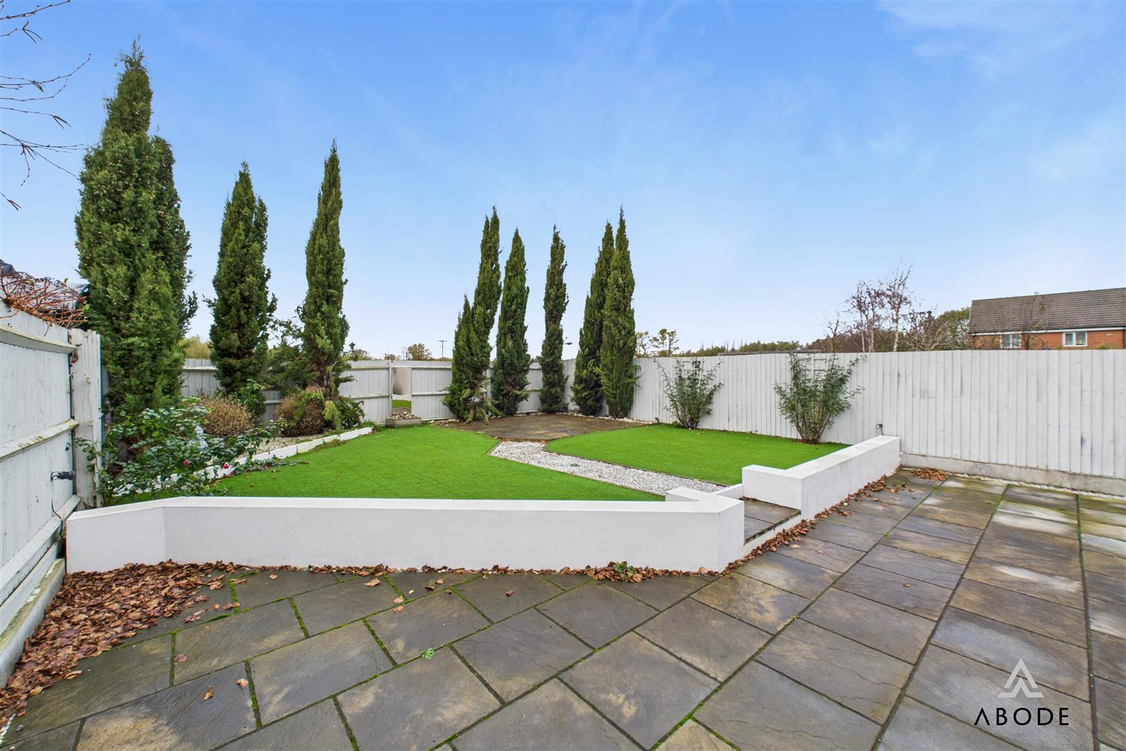 The rear garden is a beautifully designed, low-maintenance space with a south-westerly orientation and an open aspect. Mediterranean-style rendered walls, extensive porcelain-style paving, artificial lawn, outdoor lighting, a defined barbecue area, and a sociable layout combine to create a fantastic garden for relaxing and entertaining. Electricity supply is installed, and the setting enjoys excellent afternoon and evening sun.
