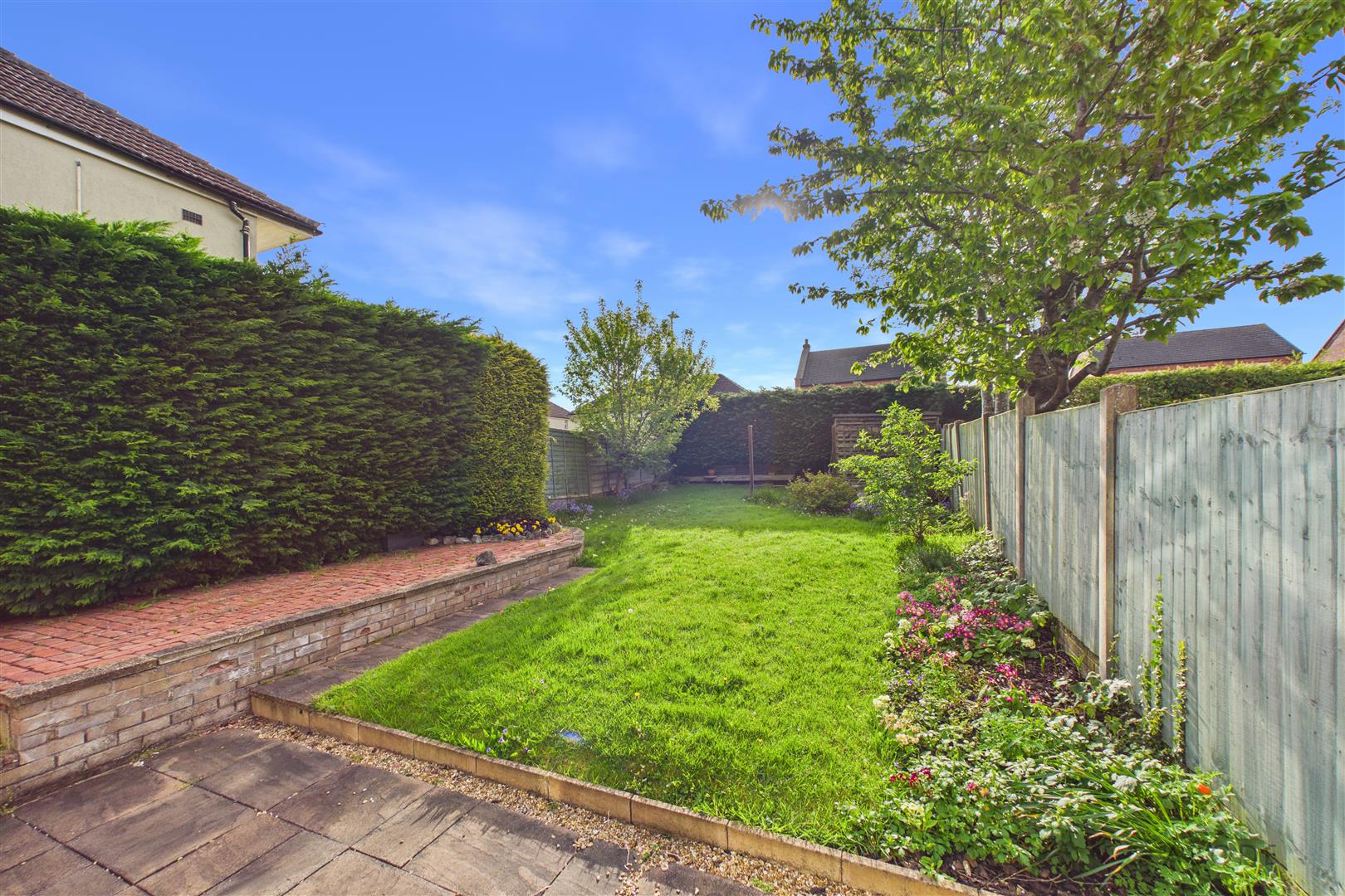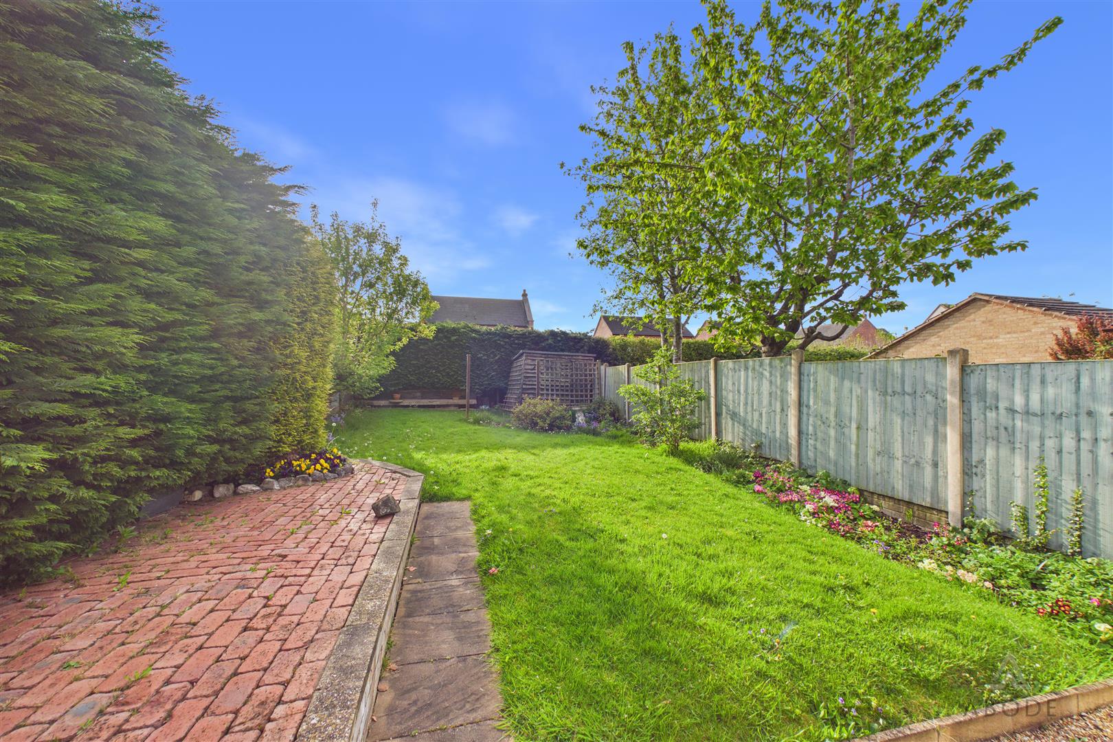To the front, the property benefits from a driveway providing off-street parking and access to the integral garage, along with a lawned fore garden. To the rear, the garden is mainly laid to lawn with established borders, along with patio seating areas and a pathway leading through the garden, offering space for outdoor seating and entertaining.