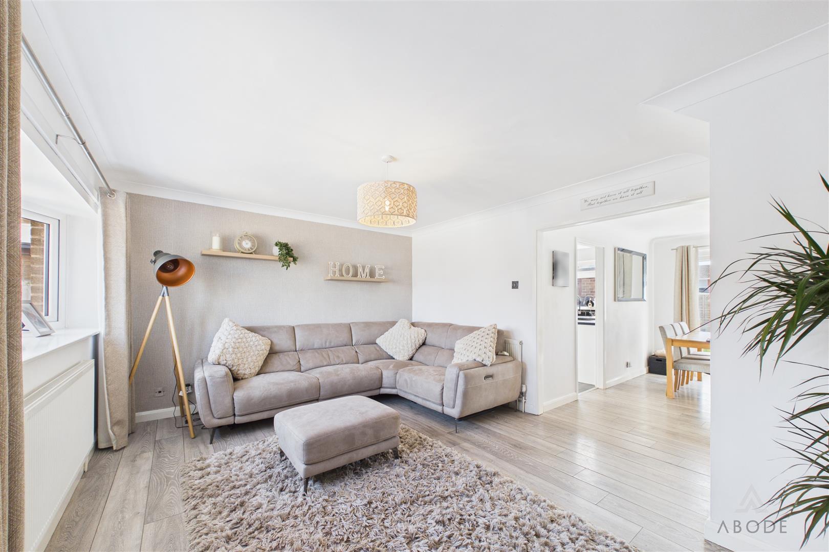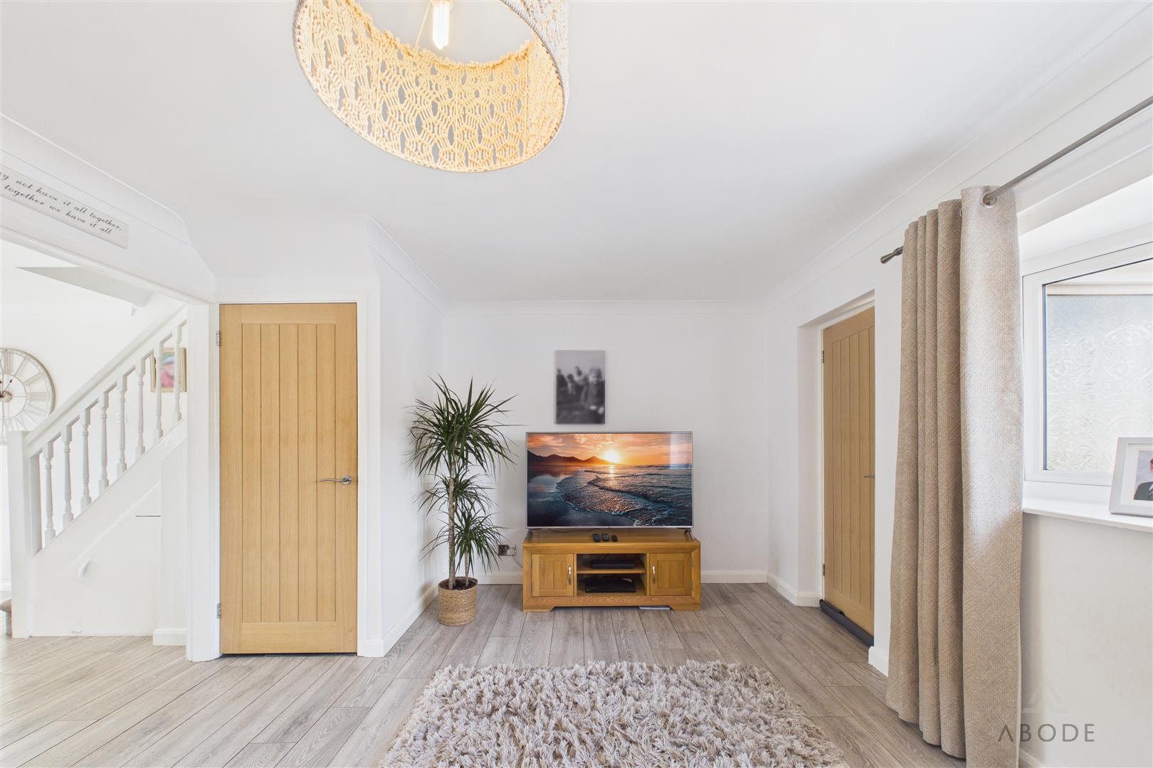 The accommodation is entered via a porch which provides a practical space for coats and shoes, leading through into the main living room. The living room is a bright and spacious reception area, benefitting from a large front-facing window and ample room for seating, creating a comfortable environment for everyday living.