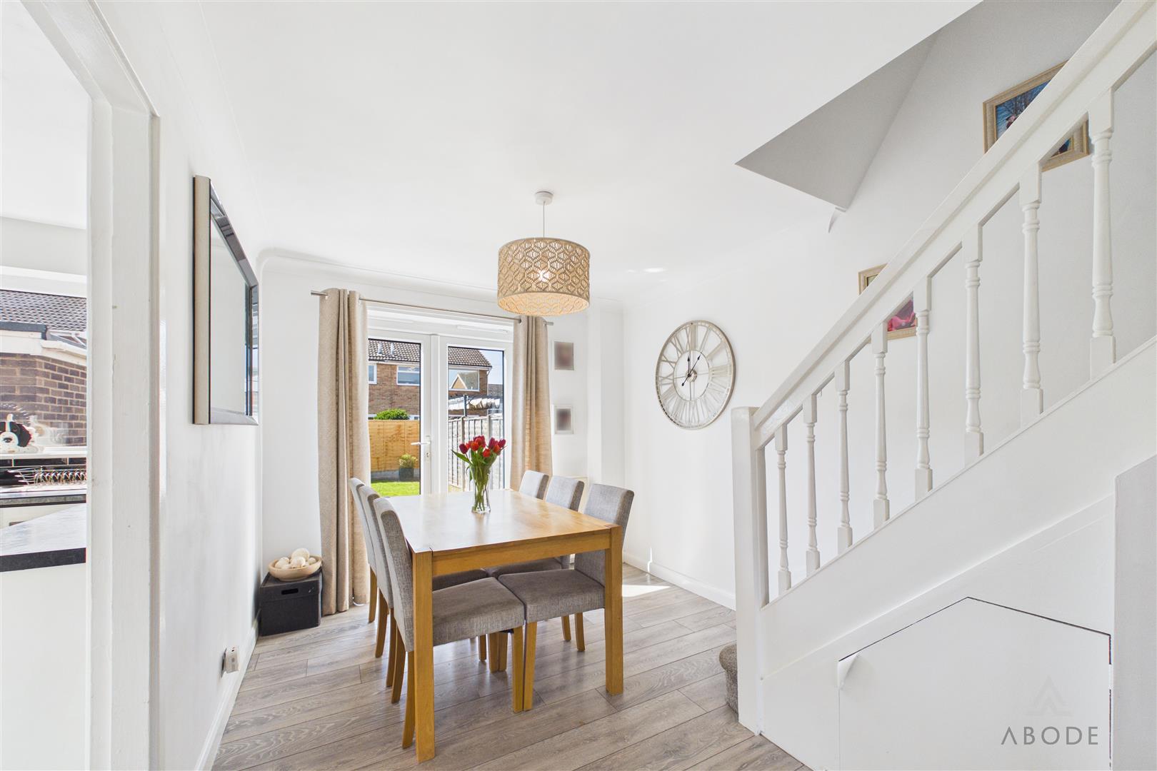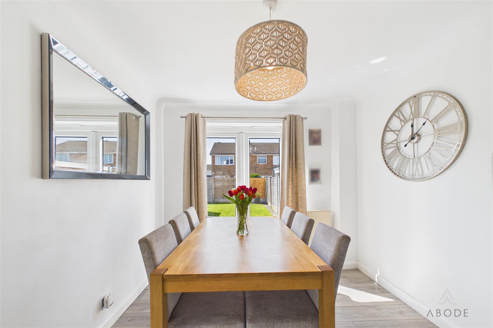 To the rear of the property is a separate dining room, offering space for a full dining table and chairs, with double glazed doors opening out to the rear garden, allowing for a pleasant connection between indoor and outdoor spaces.