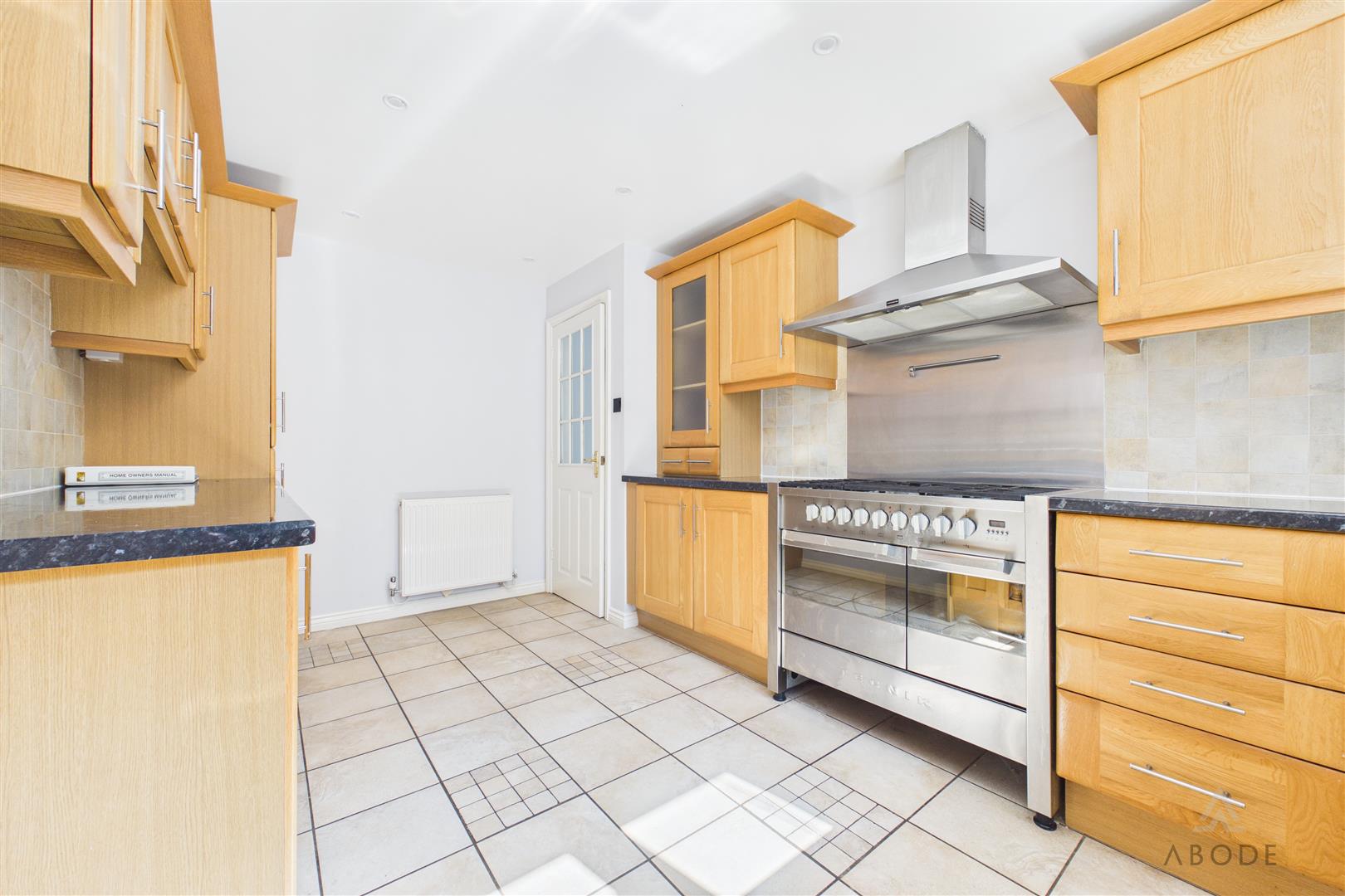 The home is entered via a welcoming hallway, leading to a selection of well-proportioned reception spaces including a bright dining room and a spacious lounge with French doors opening onto the rear garden. At the heart of the home is an upgraded kitchen-diner, fitted with a comprehensive range of units and integrated appliances, offering both practicality and contemporary appeal.