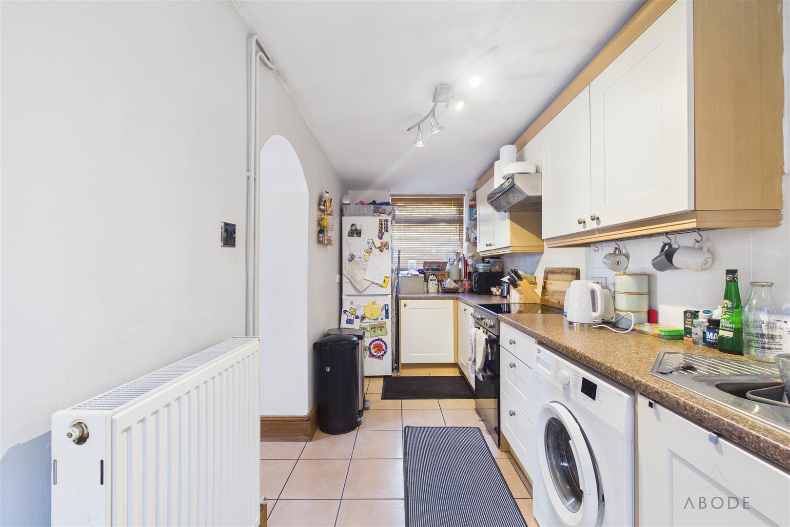 To the rear, the kitchen extends across the width of the property and is fitted with attractive cream Shaker-style units, offering both style and practicality, with direct access out to the side and garden.