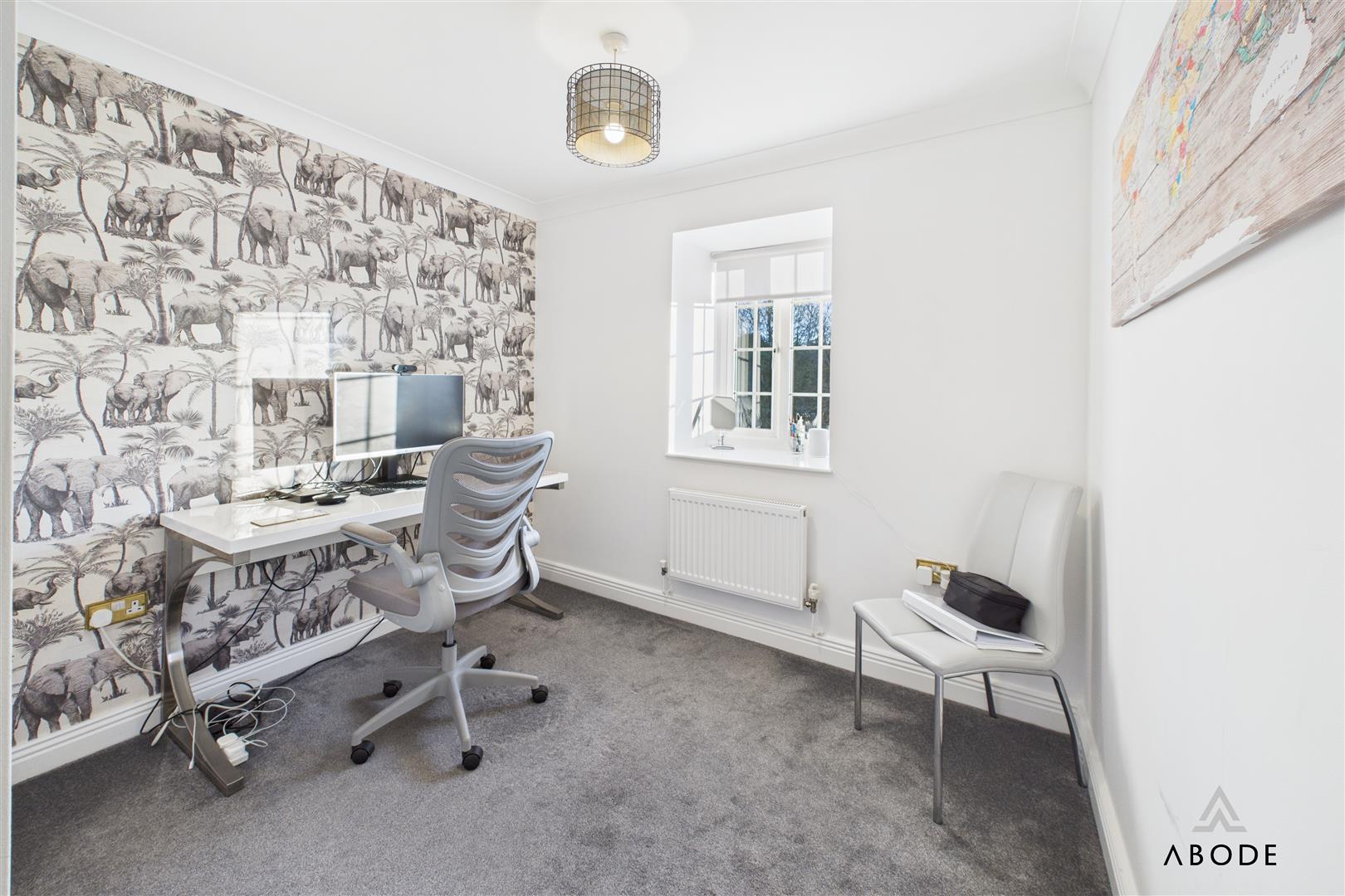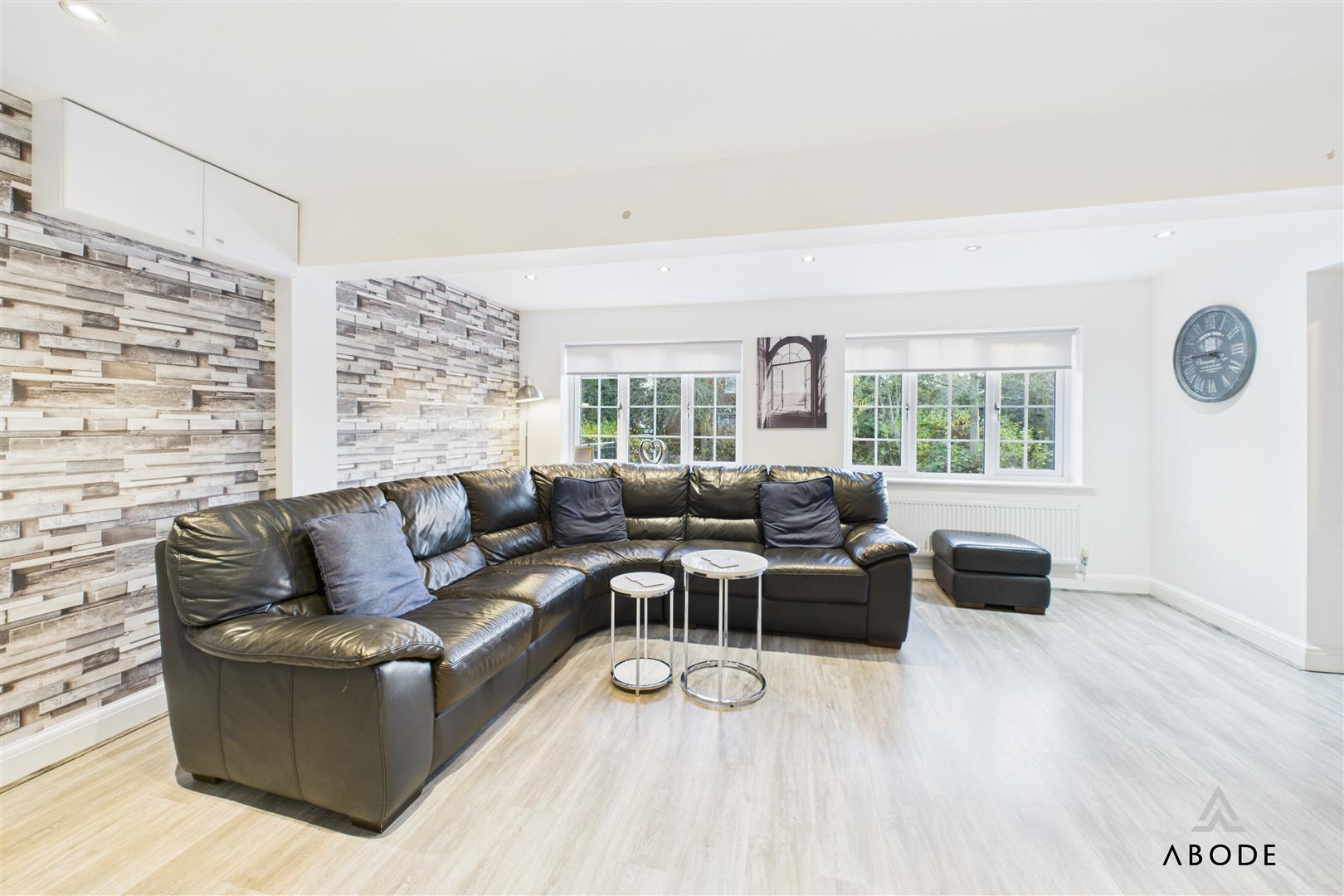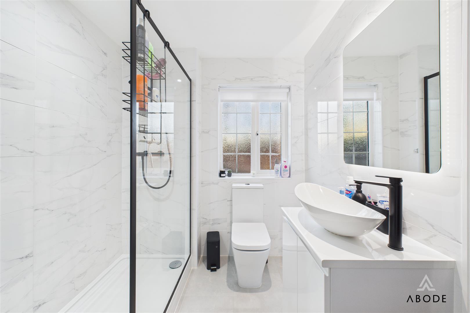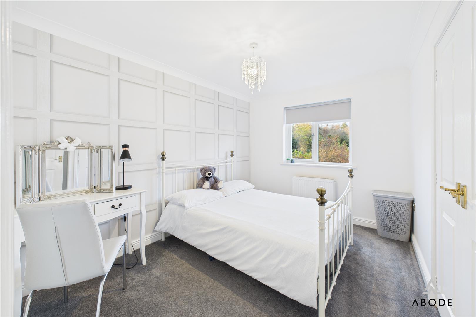 Two of these bedrooms enjoy their own en-suite shower rooms, each fitted with contemporary sanitaryware, glazed shower enclosures and modern tiling. The remaining bedrooms are served by the main family bathroom, which is fitted with a bath, wash-hand basin set into vanity storage and WC, along with a heated towel rail. This floor offers excellent flexibility for family members, guests, dressing rooms or home offices.