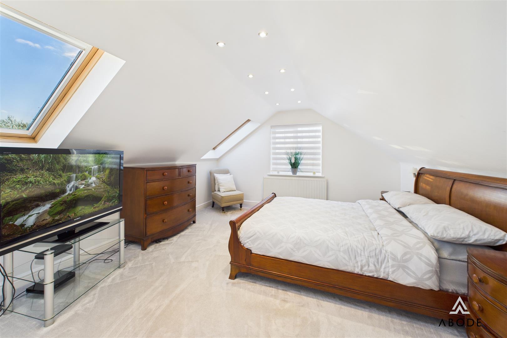 The entire top floor is dedicated to an impressive principal suite, providing a private and peaceful retreat. The main bedroom area is generously proportioned, with Velux windows and ample room for larger bedroom furniture.
