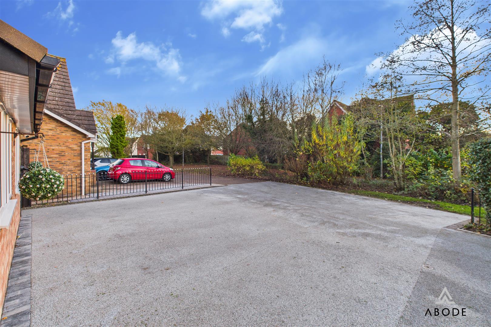 To the front, the property benefits from a broad driveway providing off-street parking for multiple vehicles and leading to the tandem double garage, which offers excellent storage or workshop potential in addition to its parking function.