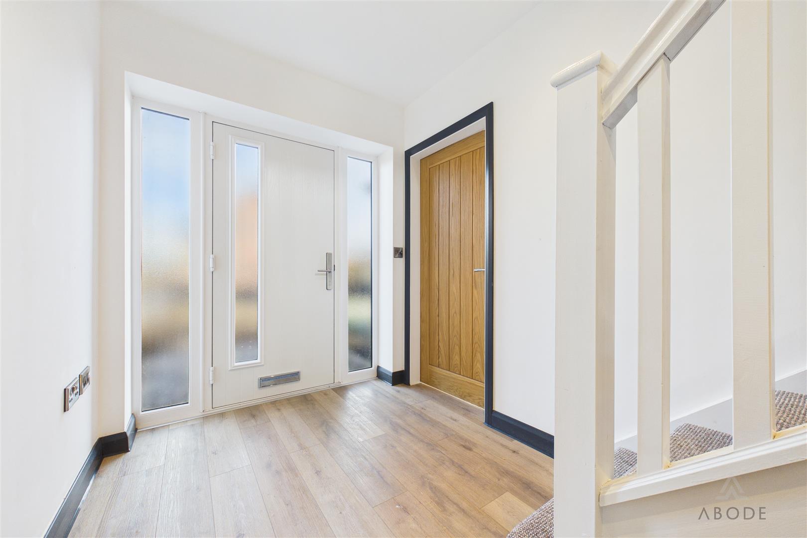 A welcoming entrance hall with staircase rising to the first-floor landing. There is a generous under-stairs storage cupboard housing the underfloor heating manifold, providing excellent…