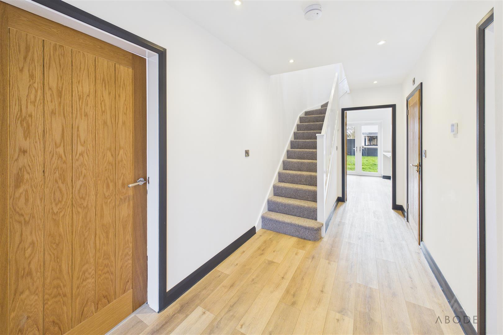A welcoming and spacious hallway featuring a staircase rising to the first-floor landing, ceiling spotlights, smoke alarm, electrical consumer unit and telephone point. Internal oak…