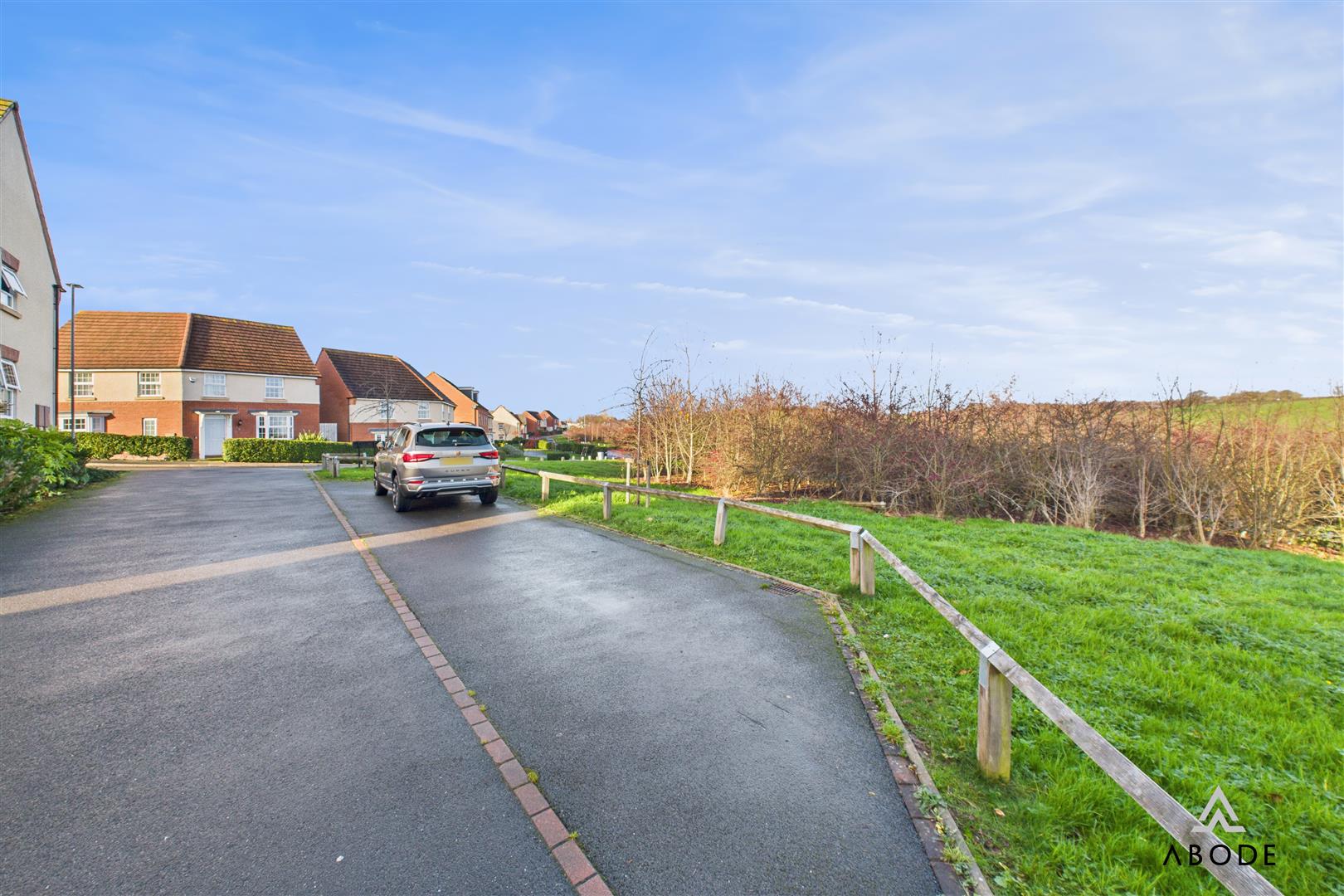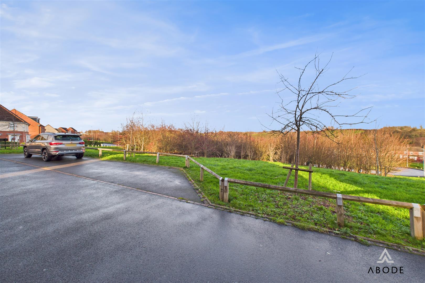 To the front, the home benefits from an attractive kerb appeal, with a tidy fore garden and an elevated position facing open green space — enhancing privacy and giving the property a lovely open aspect. Opposite the property is further parking space.