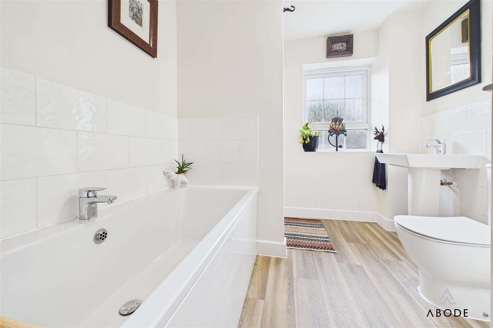 The family bathroom is presented to a high standard, offering a bath, separate shower, modern tiling, and a light, neutral colour palette.