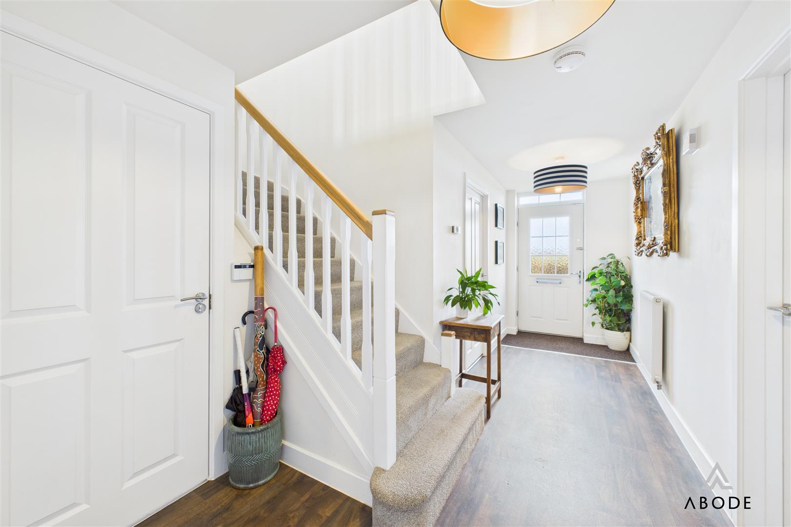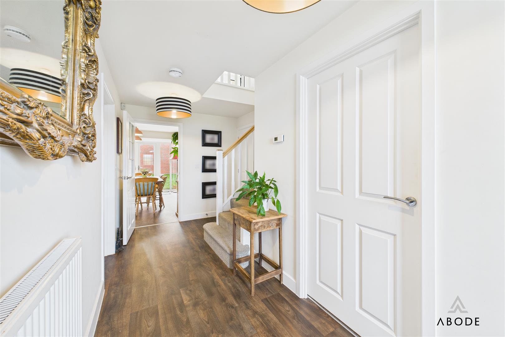 The property opens into a bright and welcoming entrance hallway, finished with quality flooring that flows through to the main living areas. From here, doors lead to the lounge, study, downstairs WC, and the impressive open-plan dining kitchen.