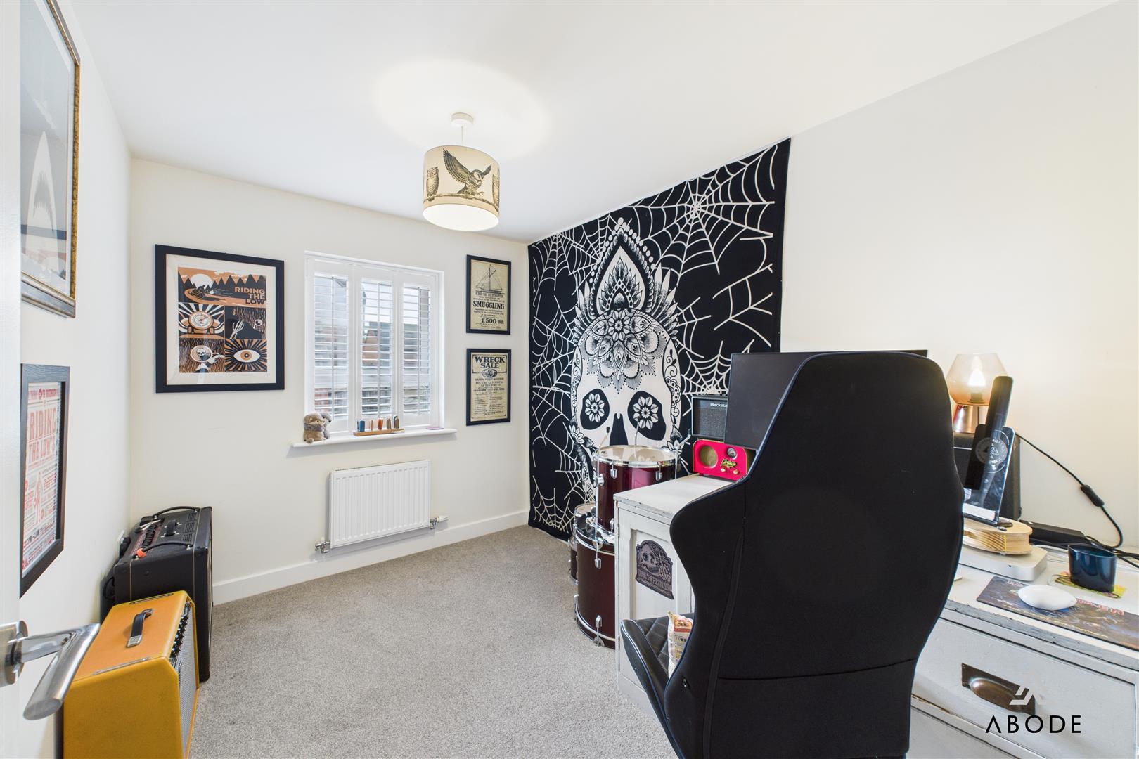 To the front of the home is a separate study, ideal as a dedicated workspace, hobby room, or reading space, with a window overlooking the front aspect and contemporary décor.