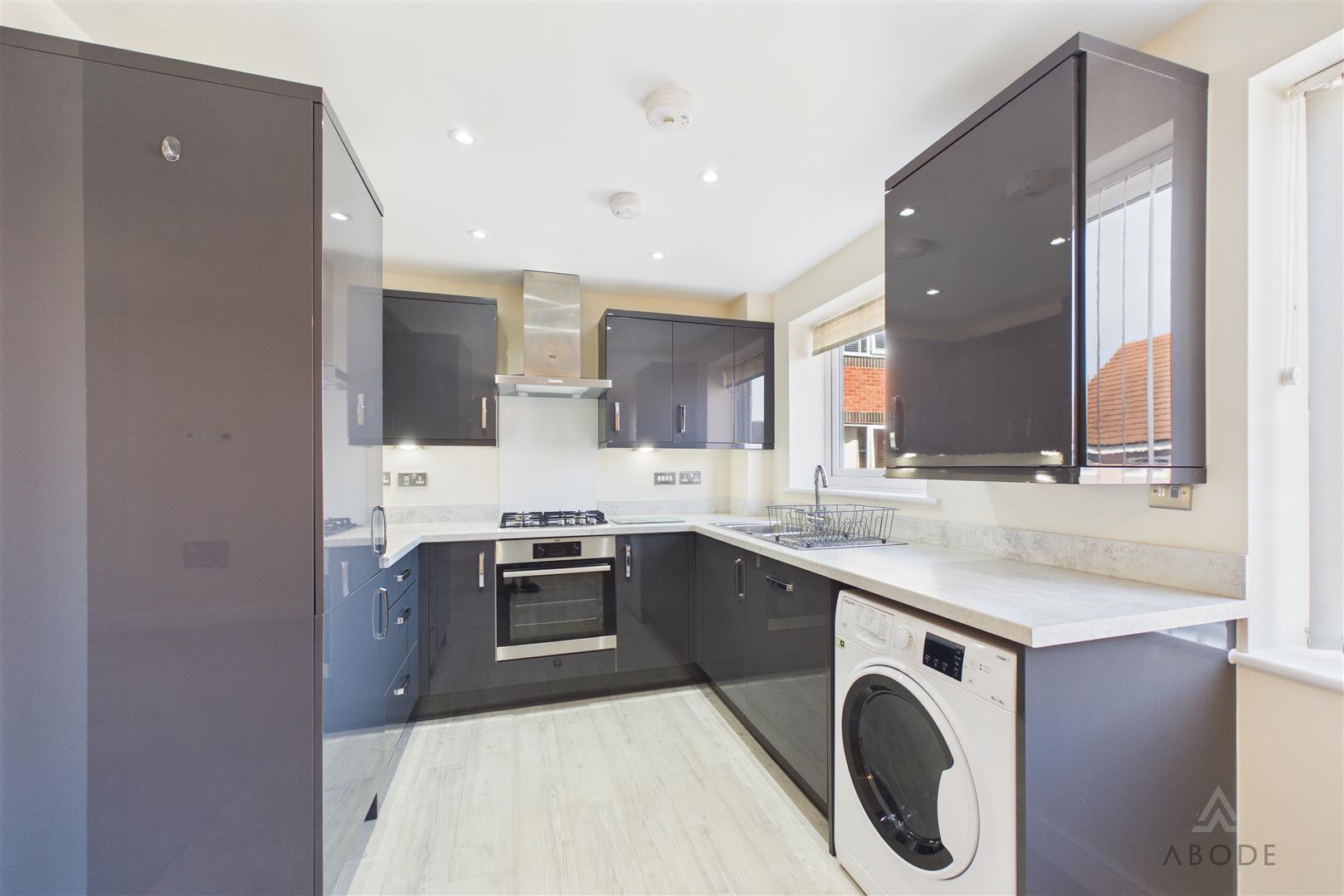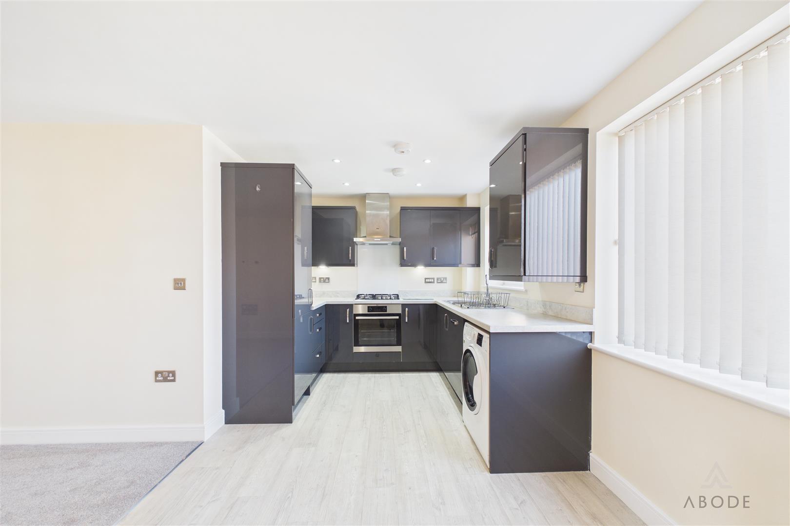 The main living space is positioned at the end mand comprises a spacious living room which opens through to the kitchen diner. This creates a sociable and versatile layout, with ample space for both seating and dining. The kitchen is fitted with a range of modern wall and base units, with work surfaces over and integrated cooking appliances, along with space for further white goods.