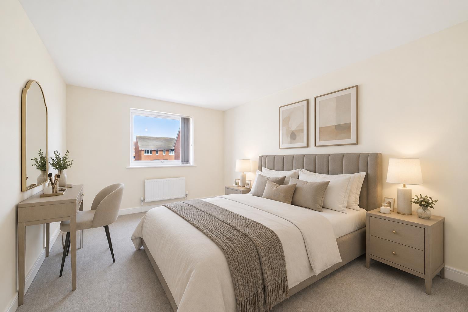 The bedroom is a well-proportioned double room, offering ample space for bedroom furniture.