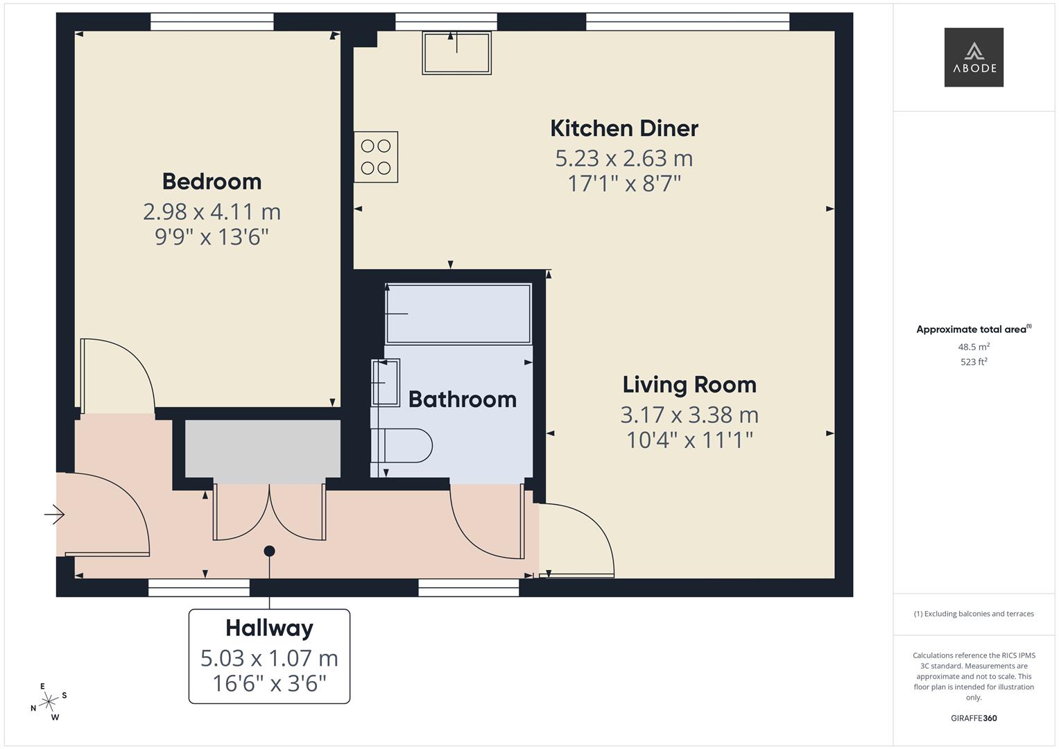 Internally, the apartment opens into a central hallway, providing access to all rooms and offering a practical flow throughout.