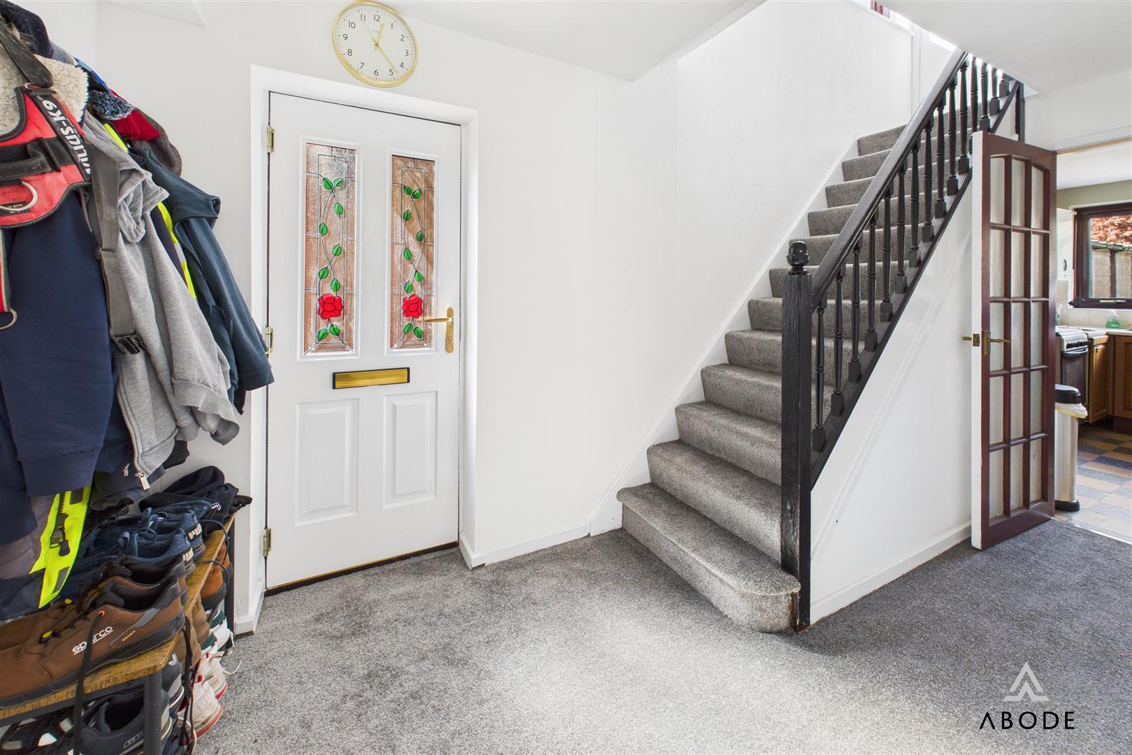 Entrance door into the hall with stairs to the first floor, radiator and doors to -