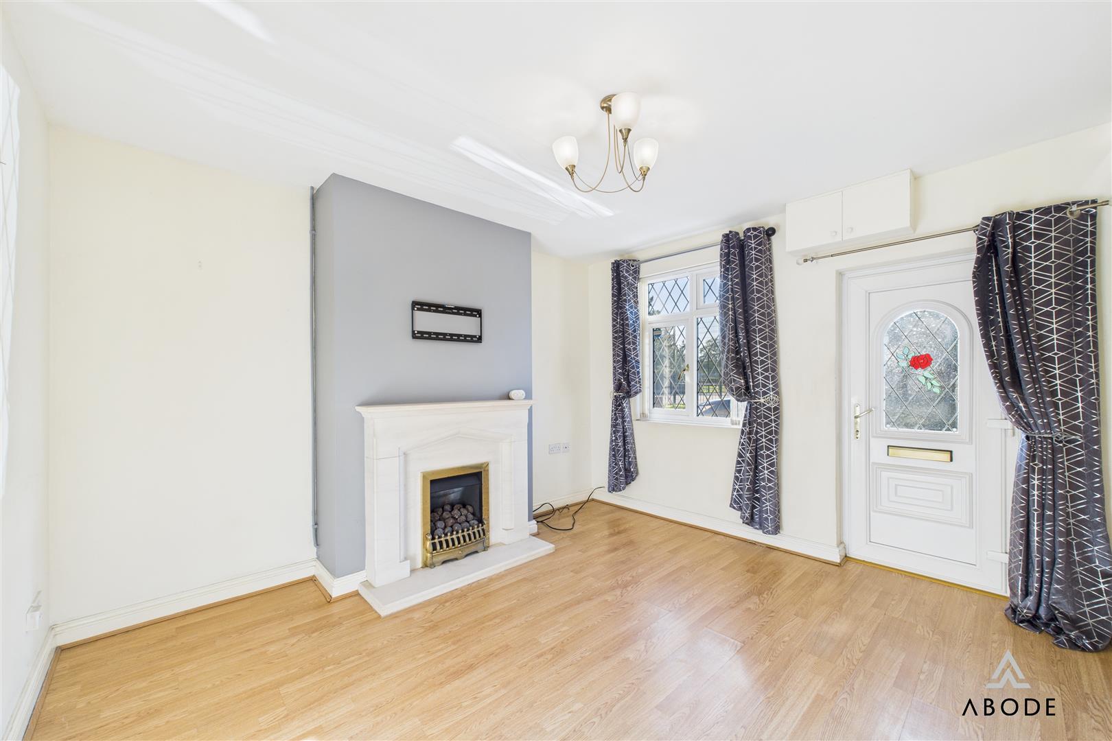UPVC double glazed window to the front elevation and door leading in from the front, central heating radiator, gas feature fireplace.