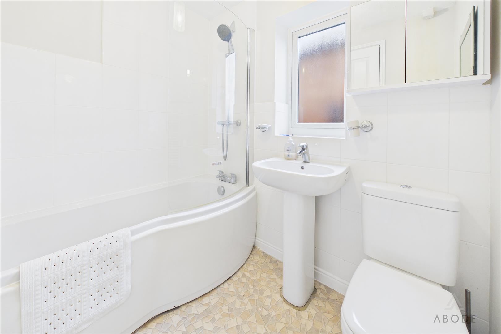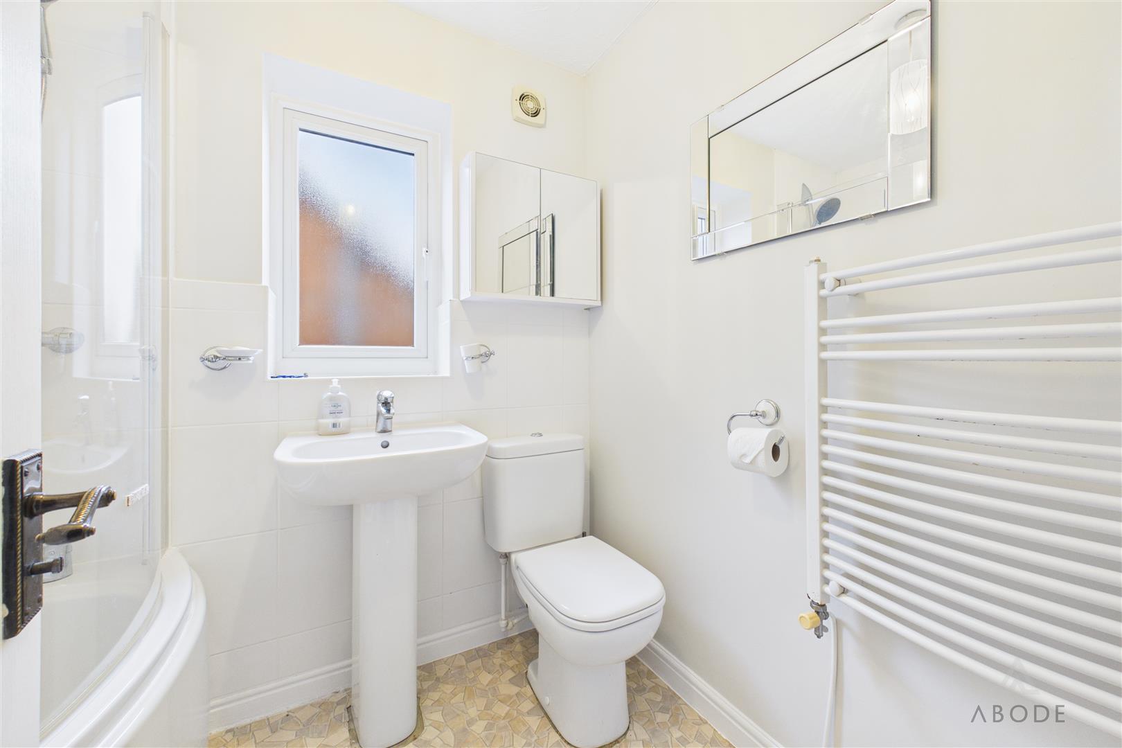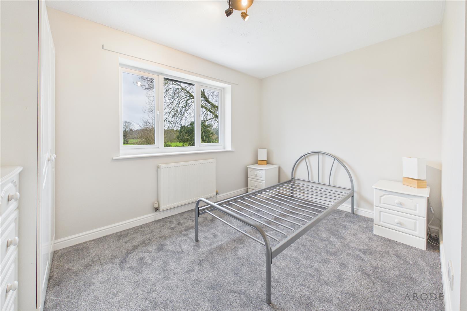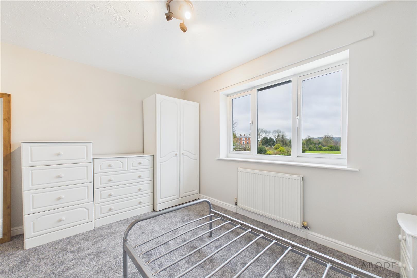 To the first floor, there are two bedrooms, with the principal bedroom benefiting from far-reaching views over open countryside and agricultural land. The second bedroom includes useful storage, and the bathroom is fitted with a modern three-piece suite with shower over bath and heated towel rail.