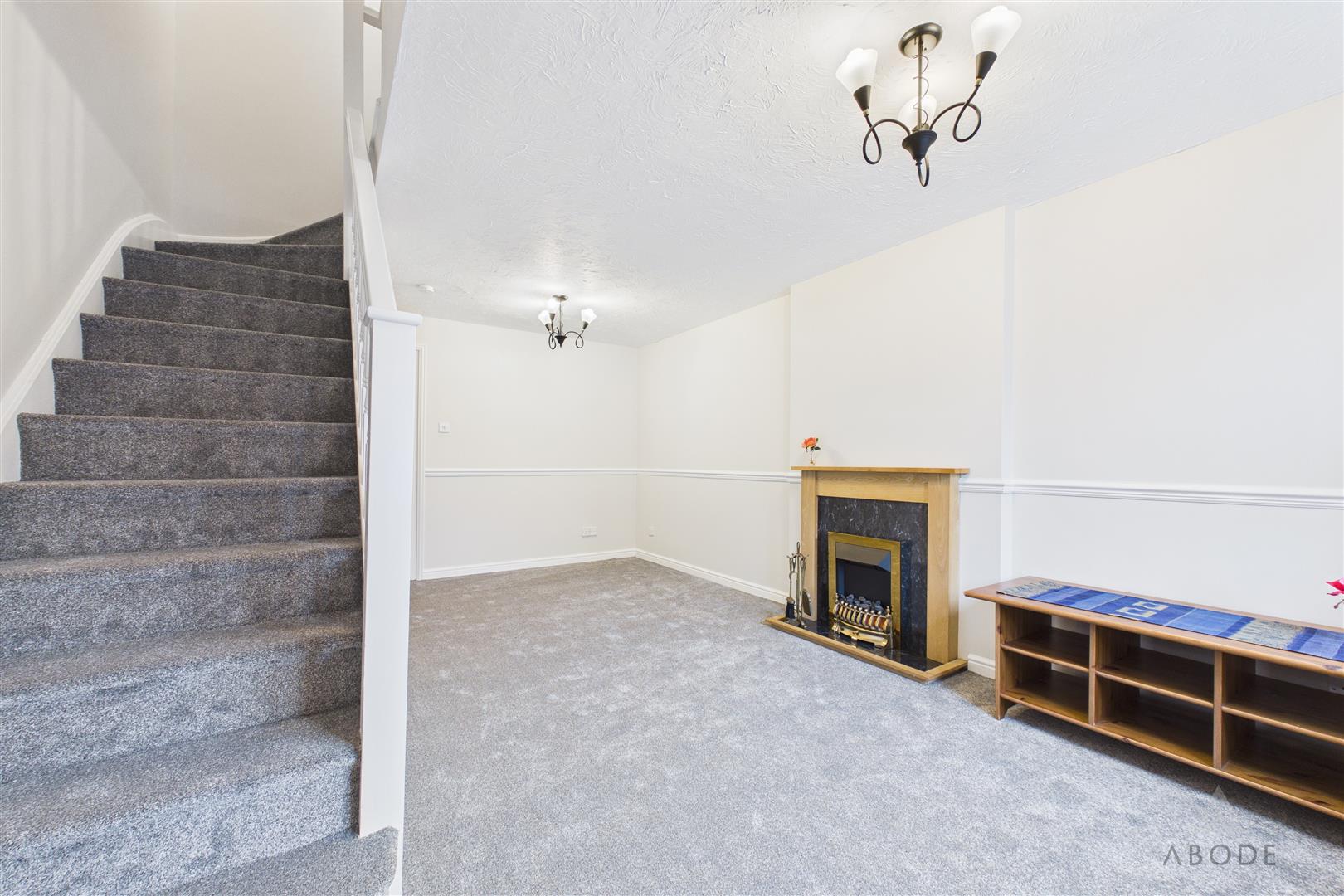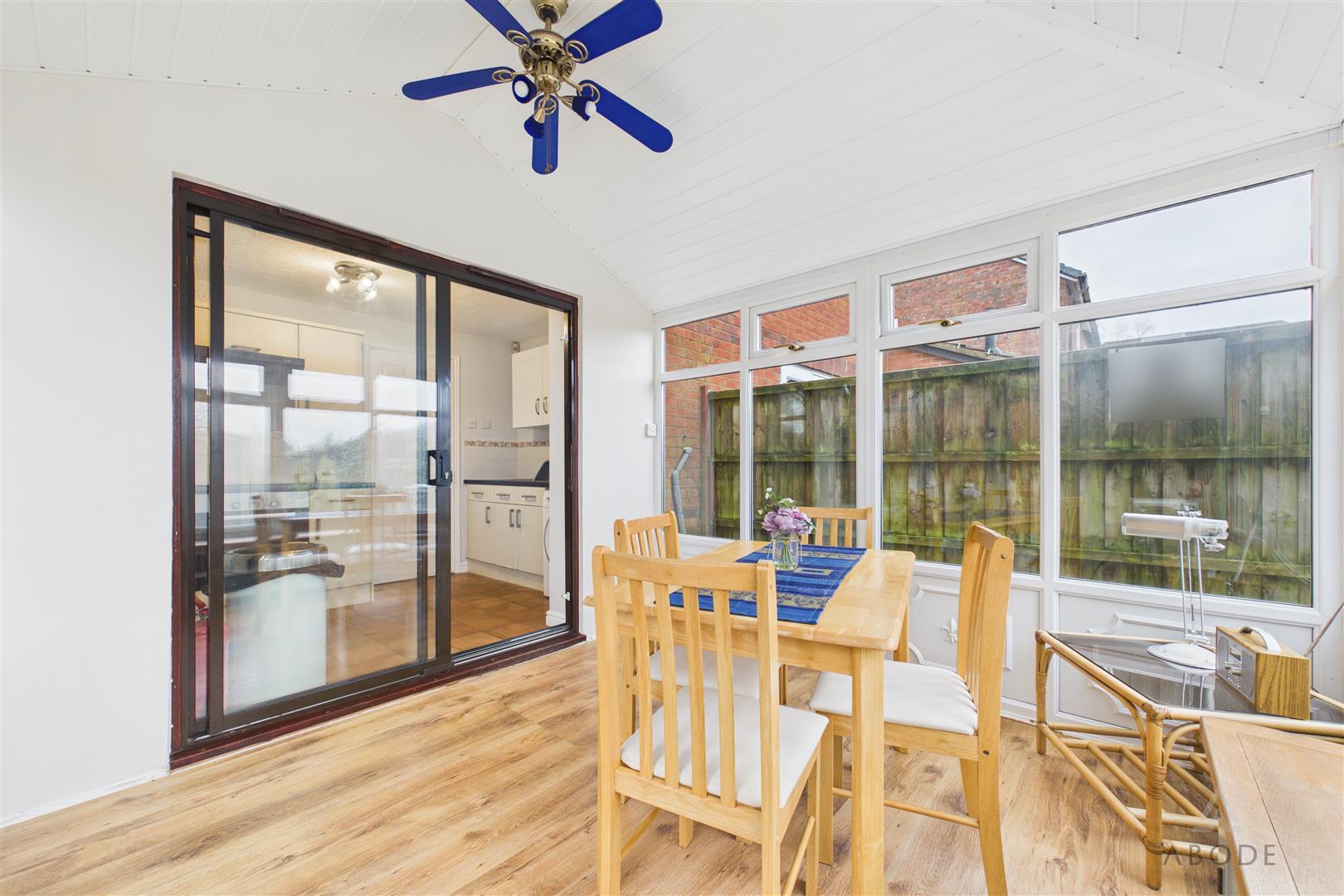 The property is entered via a welcoming porch leading into a bright and well-presented lounge with a feature electric fireplace and useful under-stairs storage. The kitchen is fitted with a range of matching units with granite-effect work surfaces and integrated appliances, with sliding doors opening into the conservatory. The conservatory enjoys views over the rear garden and provides an excellent additional living space with access out to the garden.