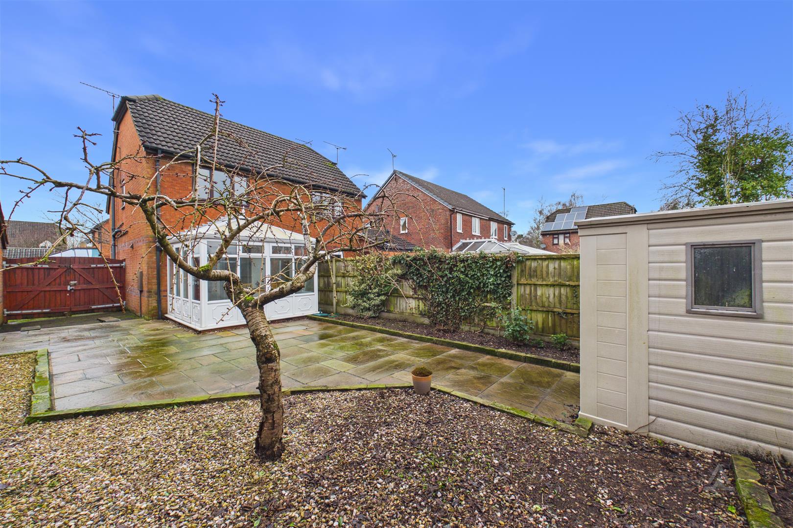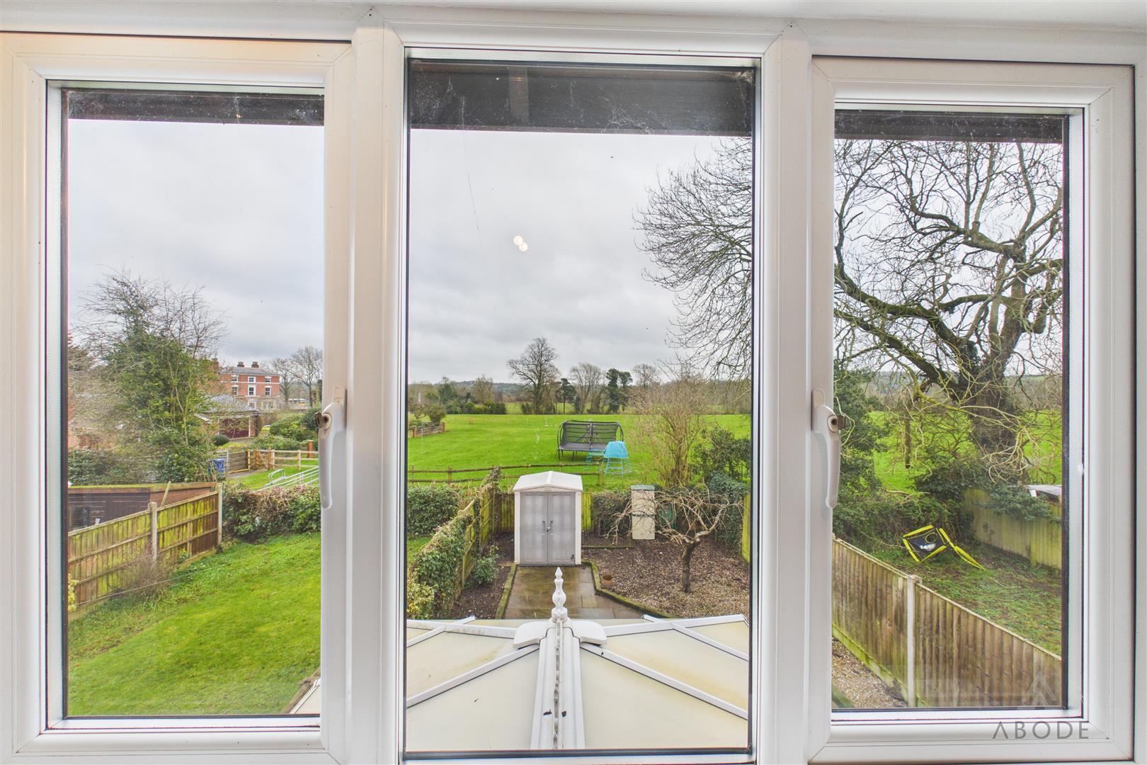Externally, the rear garden is designed for low maintenance with Indian stone paving, decorative pebbling and borders, and it backs directly onto open fields with attractive agricultural views. There is gated side access providing secure space suitable for trailers, large vehicles or motorhome storage, along with a garden shed. To the front, there is off-road parking and a pathway leading to the entrance.