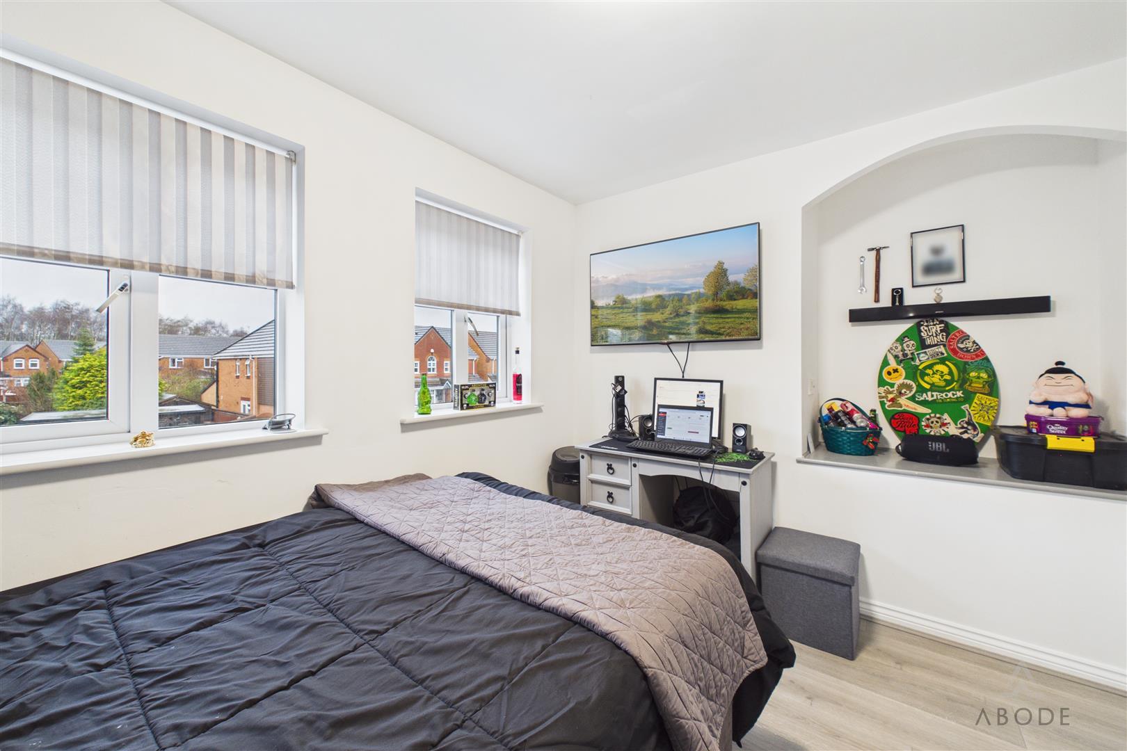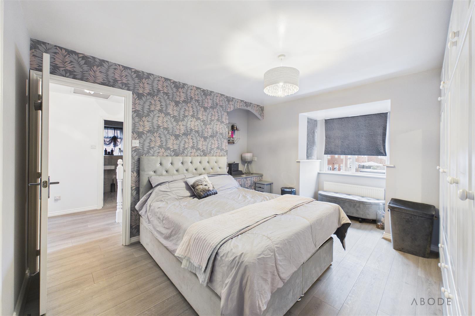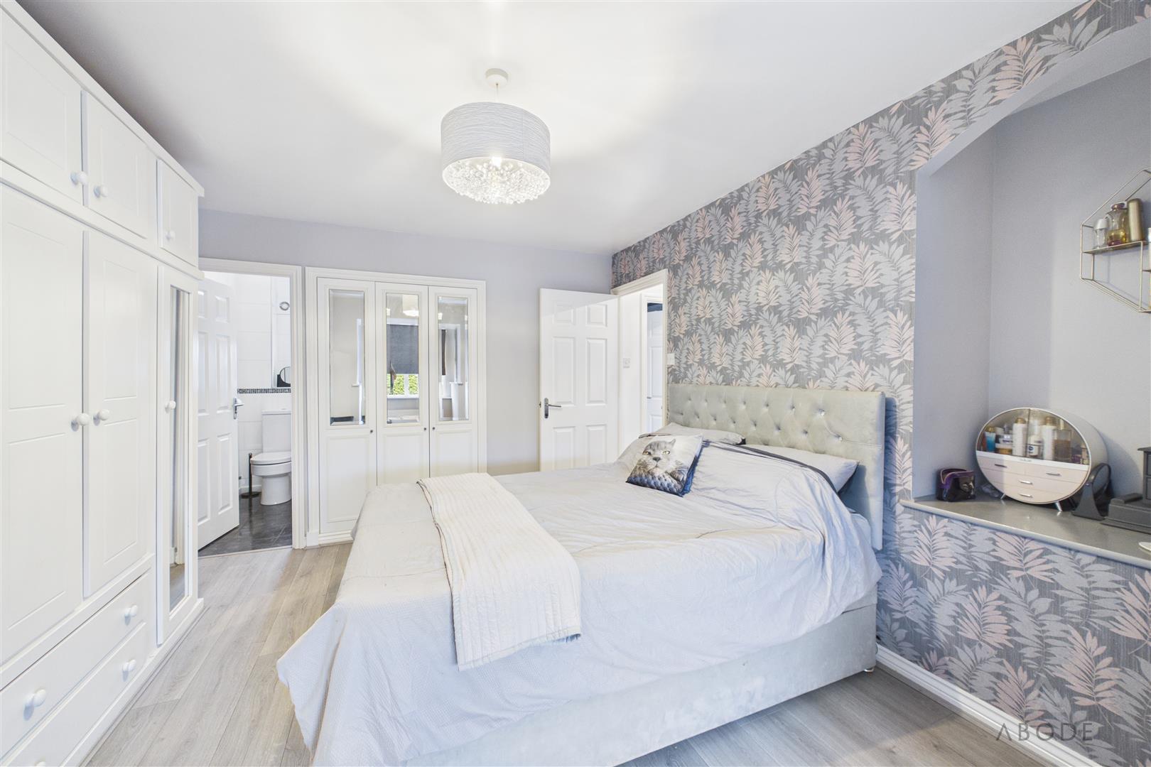 The master bedroom is a particularly generous double room, benefitting from fitted wardrobes and ample space for additional furniture. A door leads through to a modern en-suite shower room comprising a shower enclosure, wash hand basin and low-level WC.