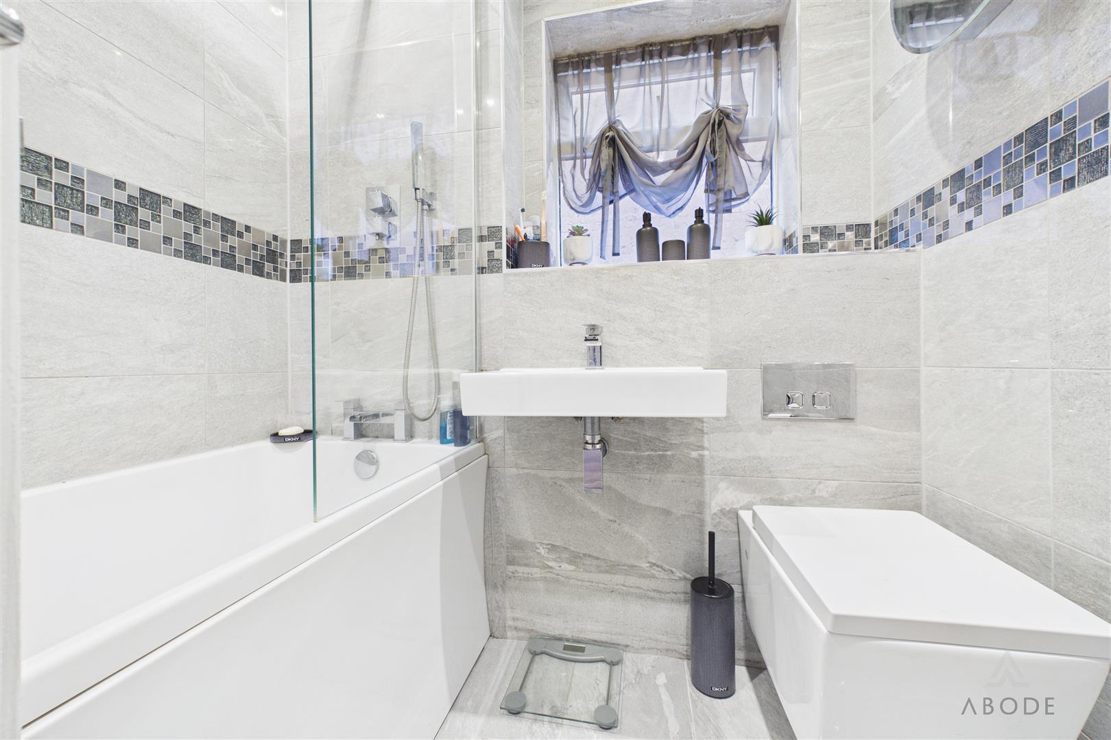 The family bathroom is fitted with a contemporary suite comprising a bath with shower over, wash hand basin and low-level WC, finished with modern tiling.