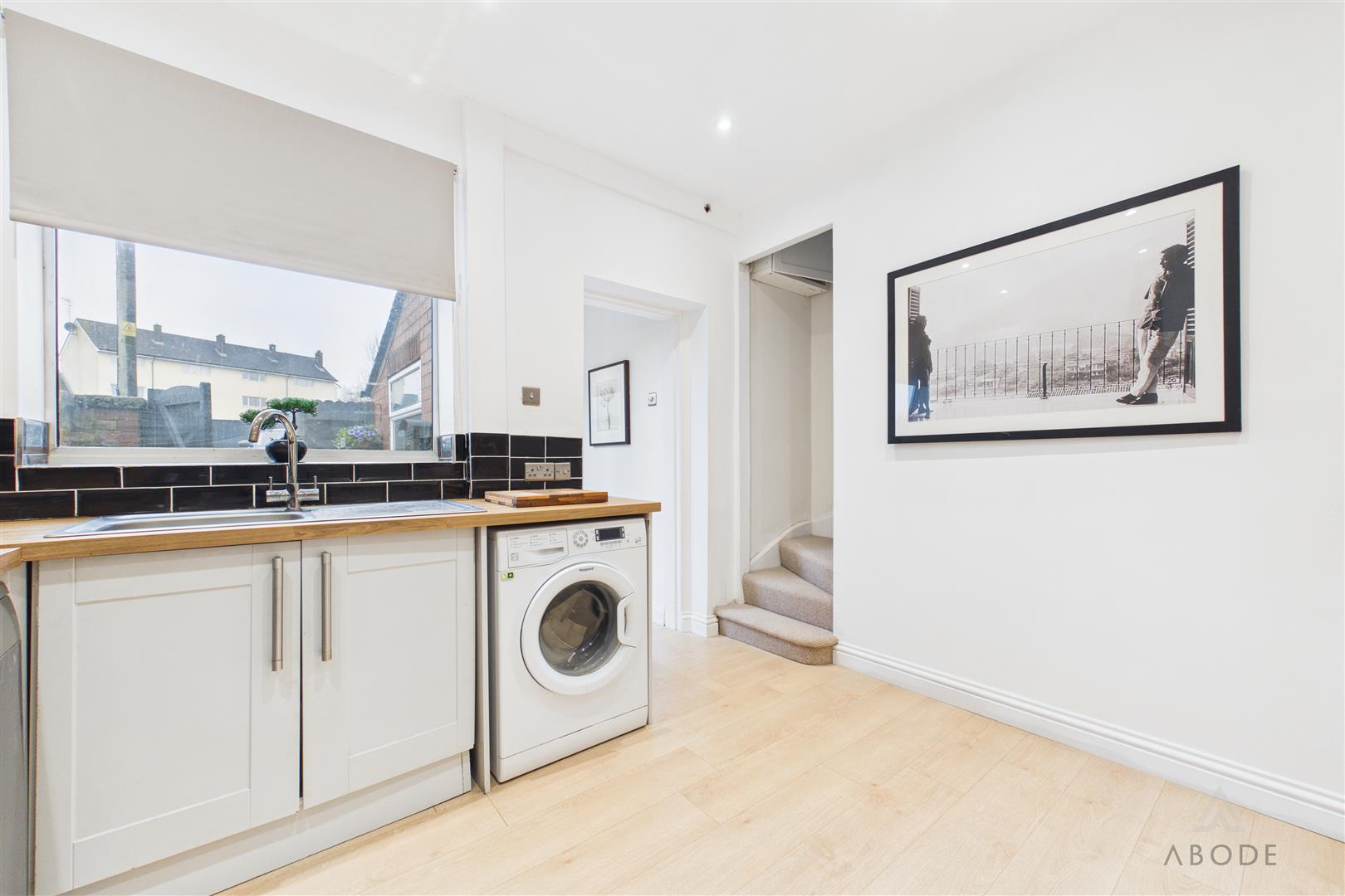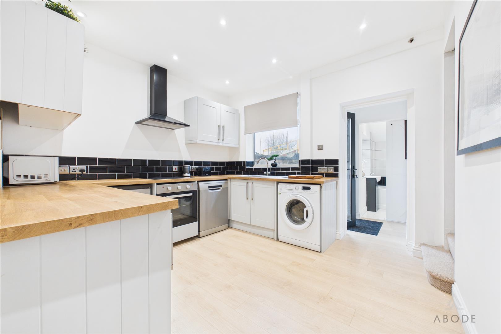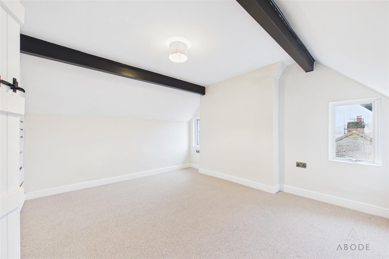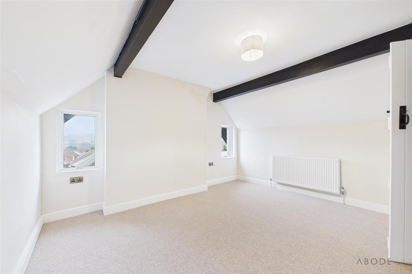 The ground floor comprises a welcoming lounge and a beautifully refitted dining kitchen, finished to a high standard with Shaker-style units, quality work surfaces and integrated appliances, creating a true heart of the home. There is also a ground floor shower room and useful additional space to the rear. To the first floor are two well-proportioned bedrooms, one benefitting from a WC, while the second floor offers a generous attic bedroom with exposed beamwork and fitted storage, adding charm and versatility to the layout.