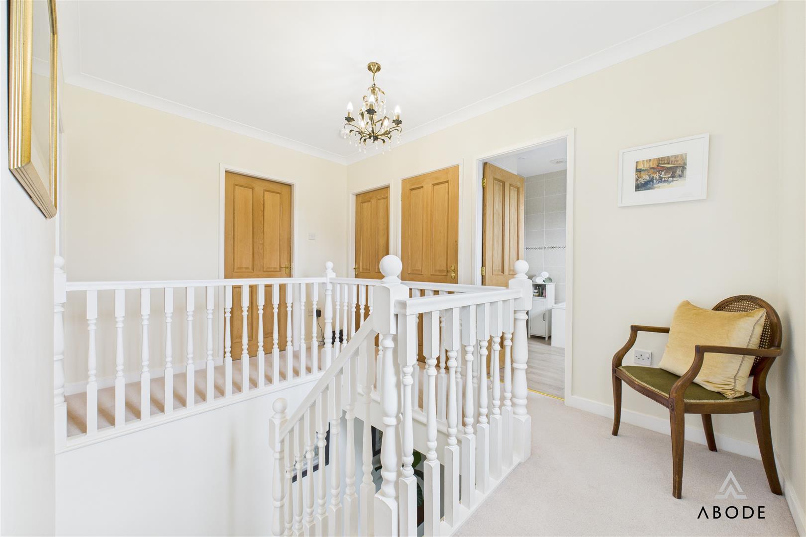 The galleried landing provides access to the principal bedroom with fitted wardrobes and a refitted en-suite shower room. There are three additional bedrooms and a large family bathroom.