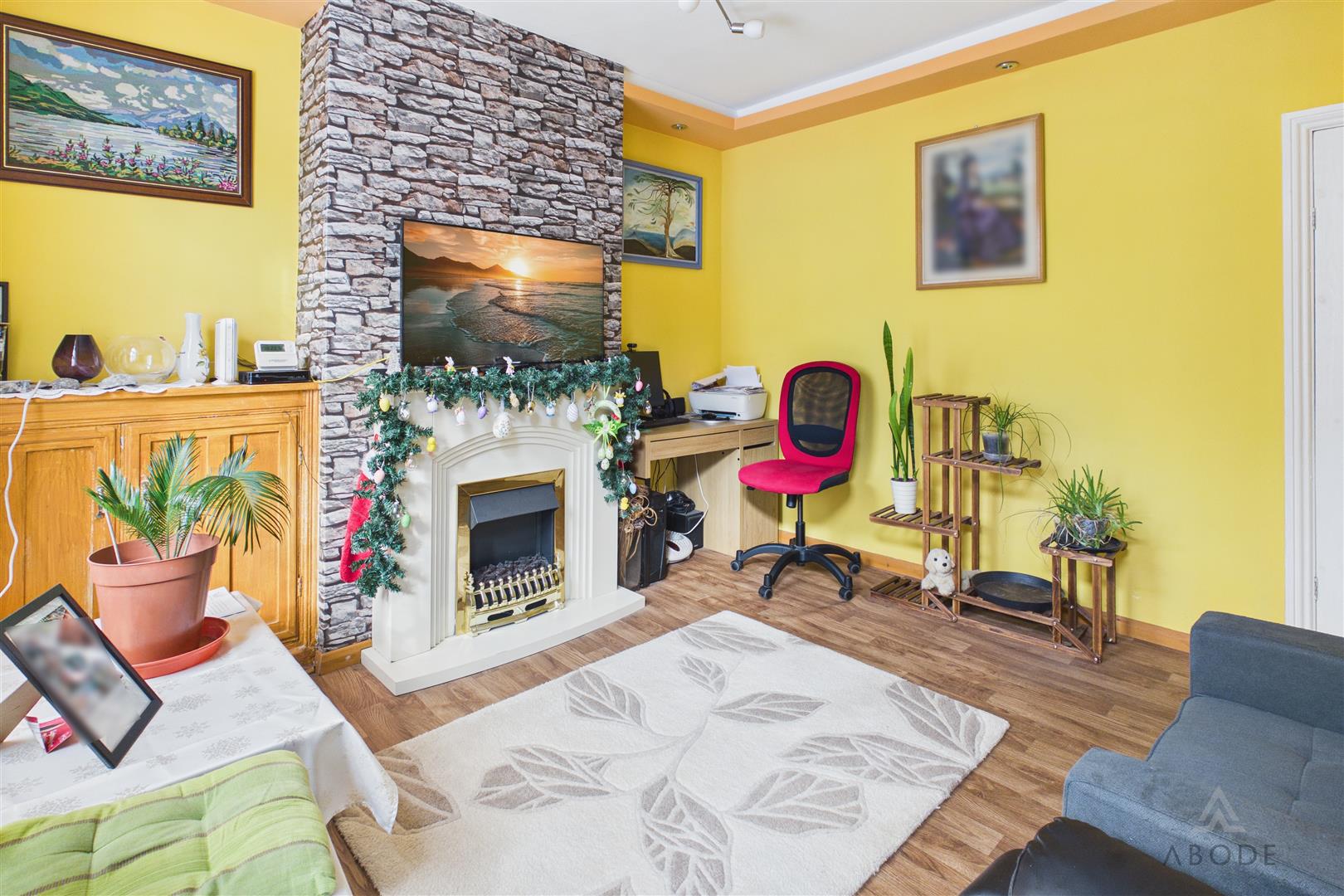 Upvc entrance door into the lounge with a upvc double glazed window to the front elevation, radiator and a feature fireplace housing an electric fire.
