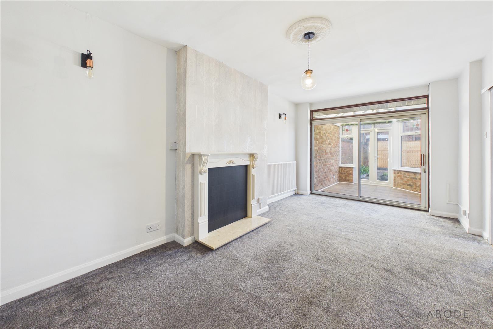 - Lounge/diner with central fireplace leading to a conservatory.