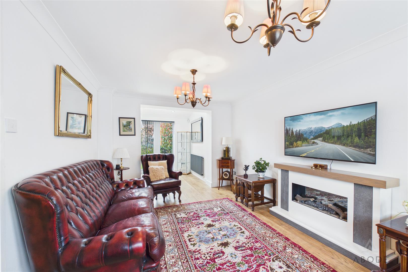 The lounge is positioned to the front elevation and features a contemporary electric fire, creating a focal point to the room. An opening leads through to the rear of the property where the home really comes into its own.