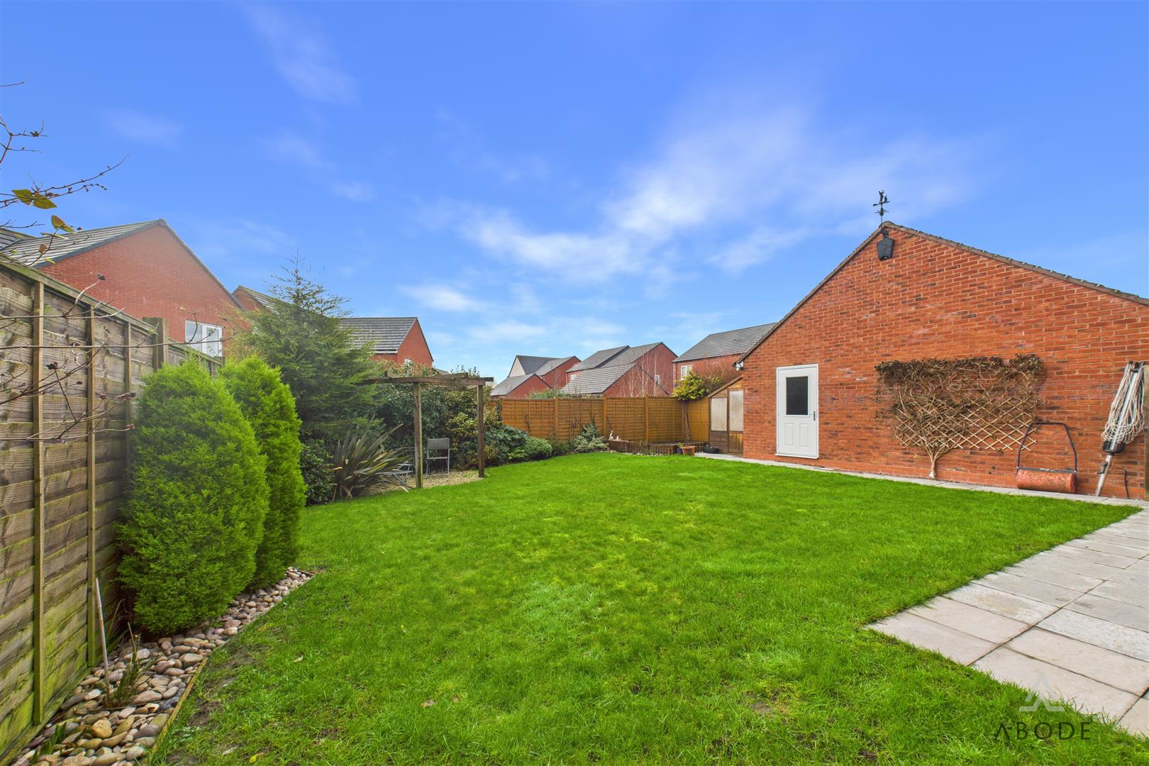 Externally, the property enjoys a south-west facing landscaped rear garden, thoughtfully designed by the current owners to create a stylish and relaxing outdoor space. To the front is larger-than-average off-road parking, leading to a detached garage. Estate management charges apply at approximately £308 per annum.