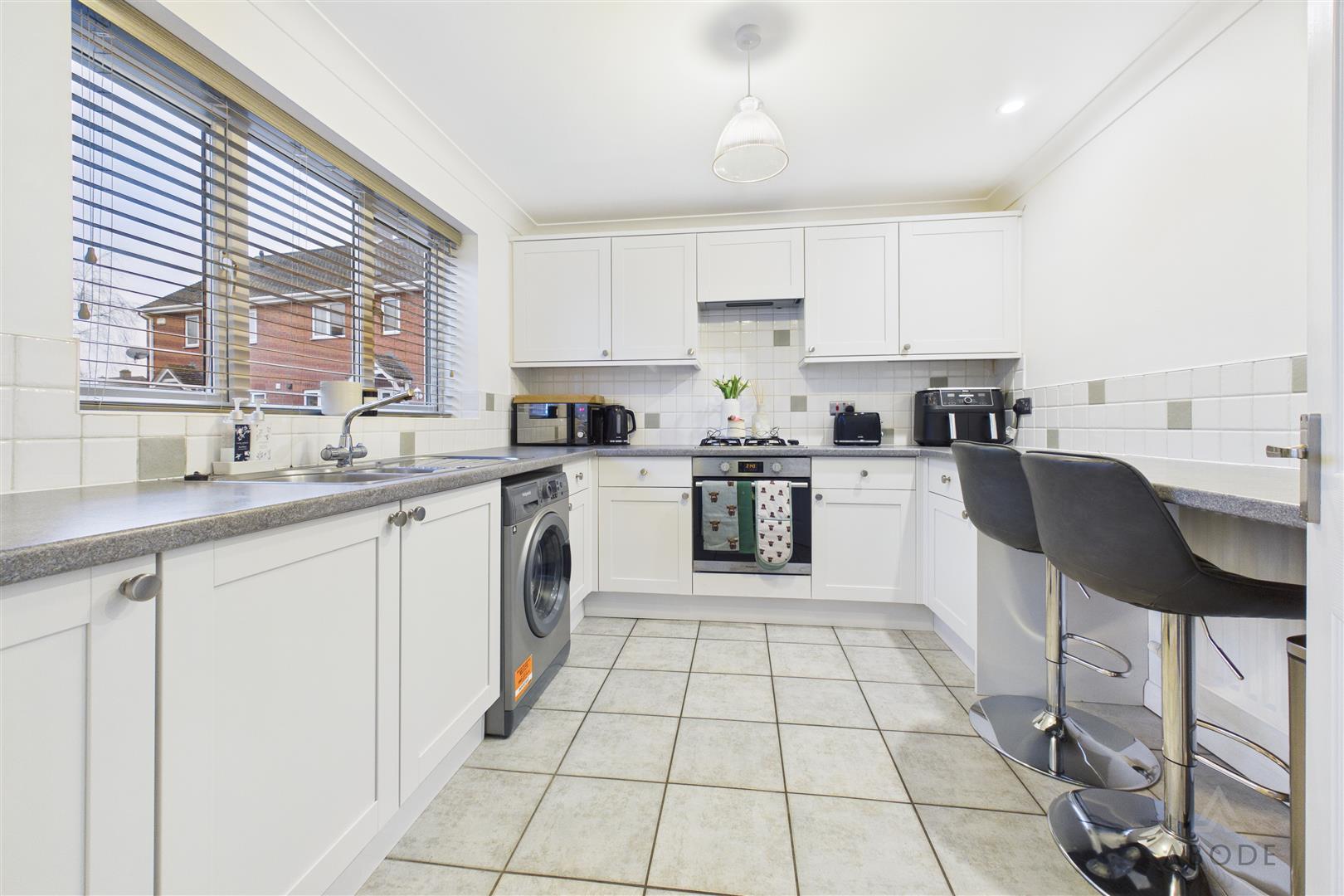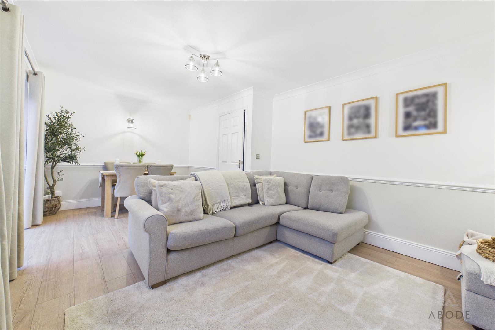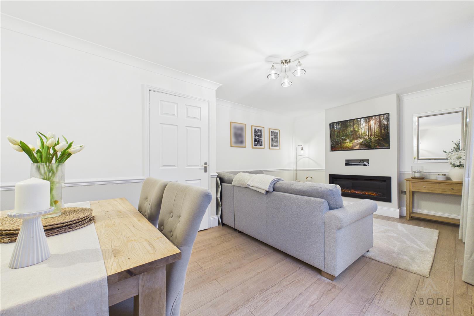 The ground floor offers a welcoming entrance hallway with attractive timber wall panelling and useful under-stairs storage. The modern kitchen is positioned to the front of the property and features contemporary units, integrated appliances and a breakfast bar area. To the rear, a spacious lounge diner provides an excellent living and entertaining space, enhanced by sliding doors opening directly onto the rear garden. A convenient downstairs WC completes the ground-floor accommodation.