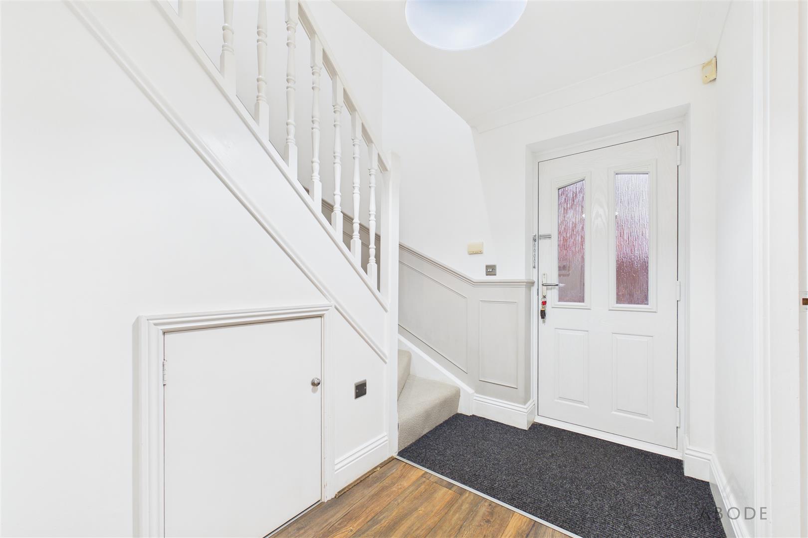 A welcoming entrance hallway with a staircase rising to the first-floor landing, complemented by attractive timber wall panelling. There is useful under-stairs storage, panelled flooring with…