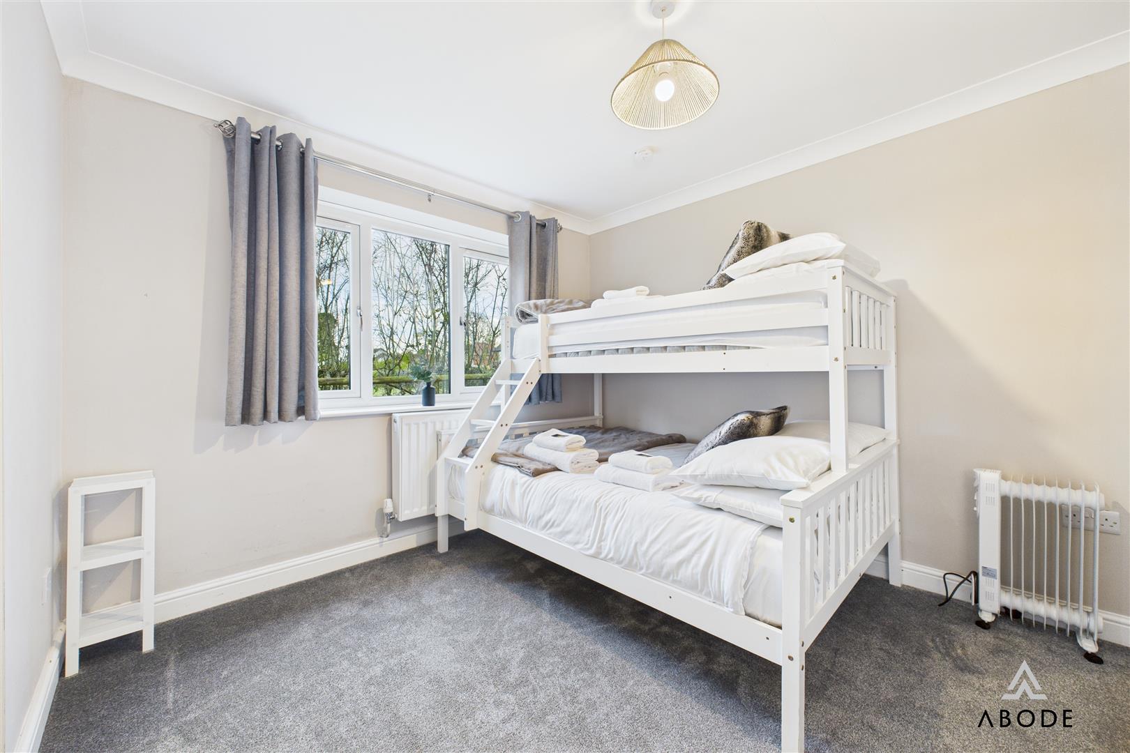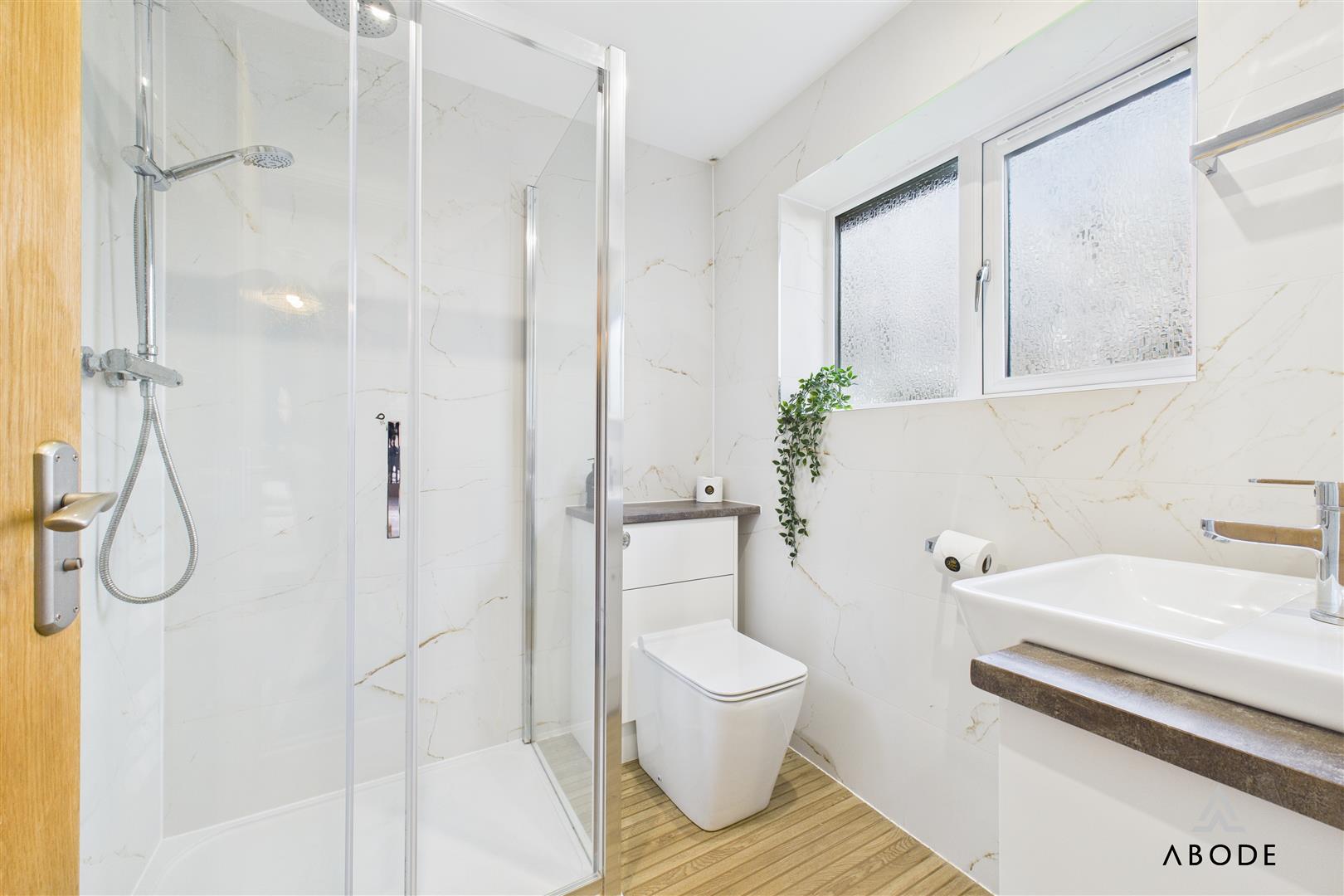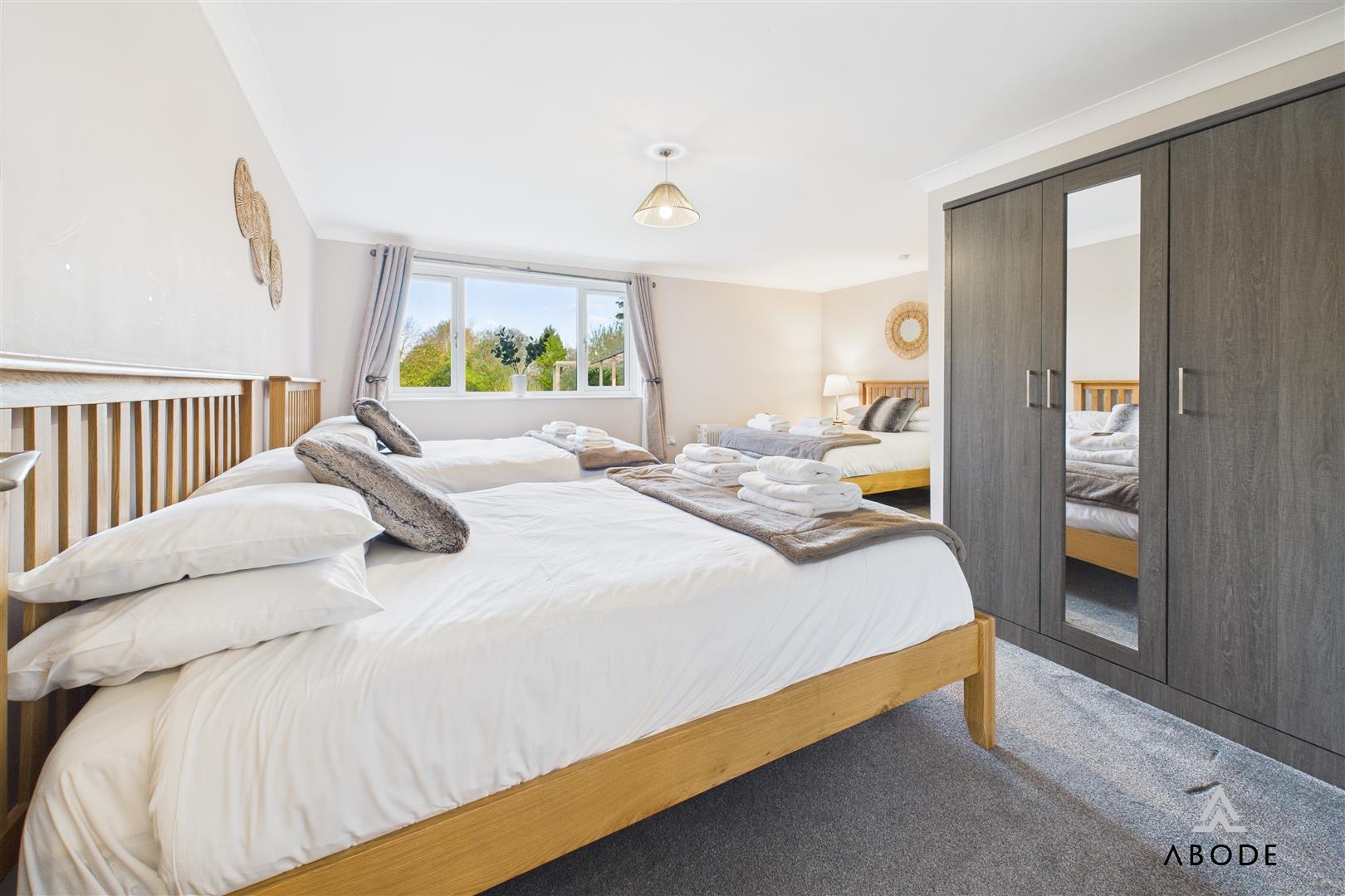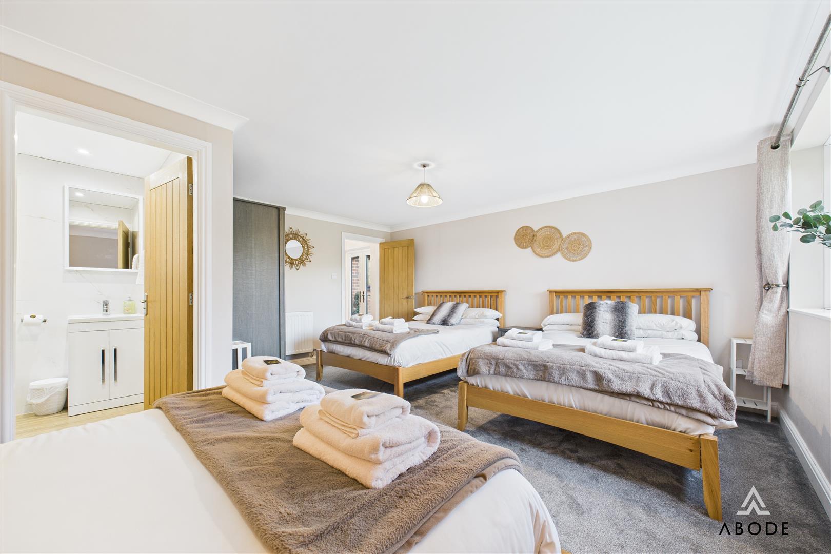 The lounge provides a warm and relaxing setting, with views across open grazing fields, sliding doors to the lawned garden and a charming feature fireplace with brick backing and sandstone mantle. The bungalow offers four well-proportioned bedrooms, each with UPVC double glazing and central heating radiators. The master bedroom and bedroom three both benefit from modern en suite shower rooms with contemporary tiling and quality fixtures, while the main bathroom features a sleek three-piece suite with shower over bath.