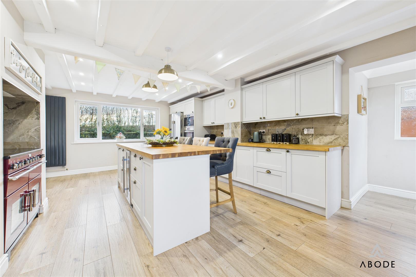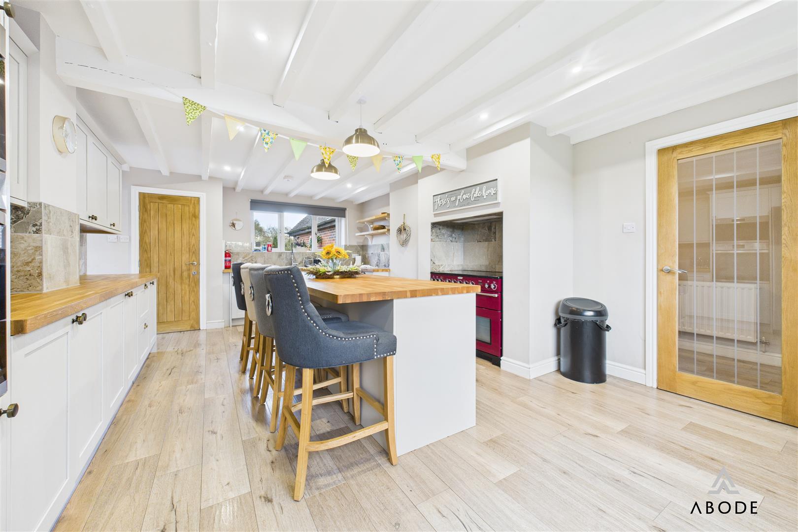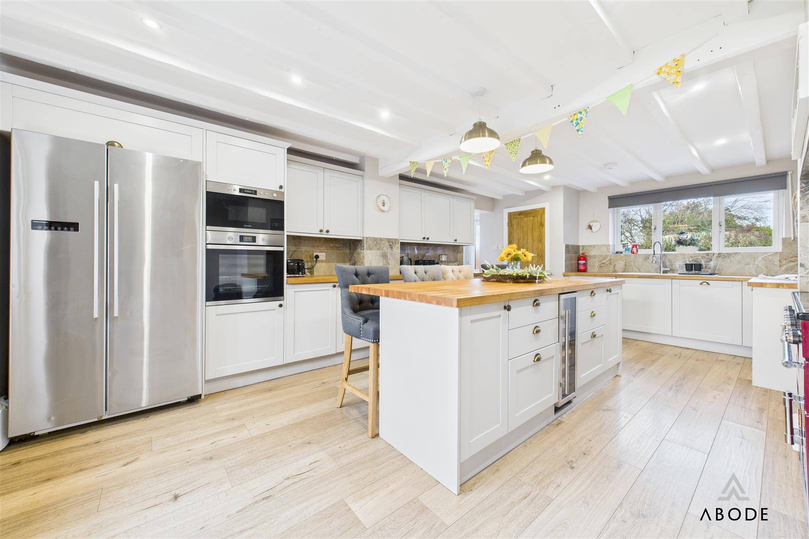 Bridge Farm is a detached four-bedroom bungalow set in a beautiful plot of circa 1.17 acres, offering an exceptional combination of space, privacy and picturesque rural surroundings. A generous entrance hallway creates an inviting first impression, featuring oak doors, ample storage and French doors leading to a landscaped patio. The spacious open-plan kitchen diner enjoys dual-aspect windows, a stylish breakfast island, exposed beams, extensive storage and a full range of integrated appliances, making it an ideal hub for family living and entertaining.