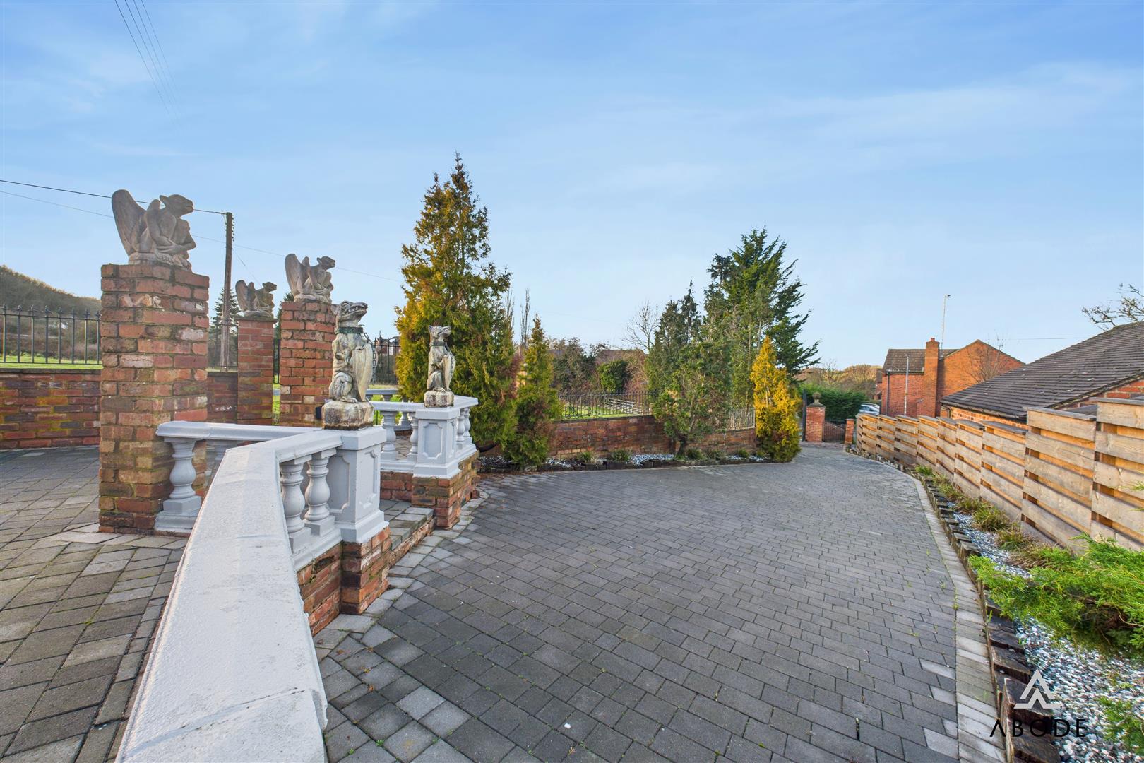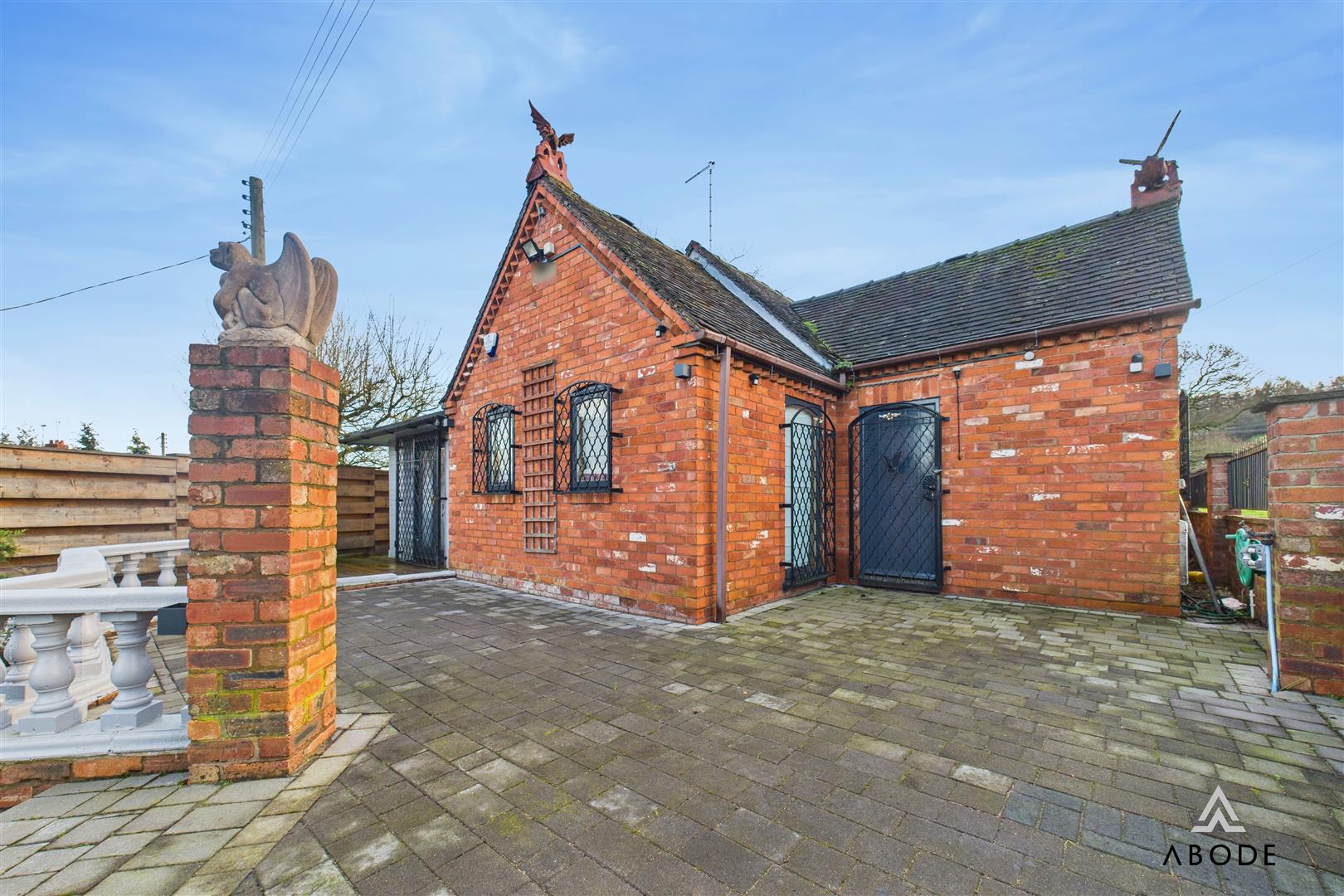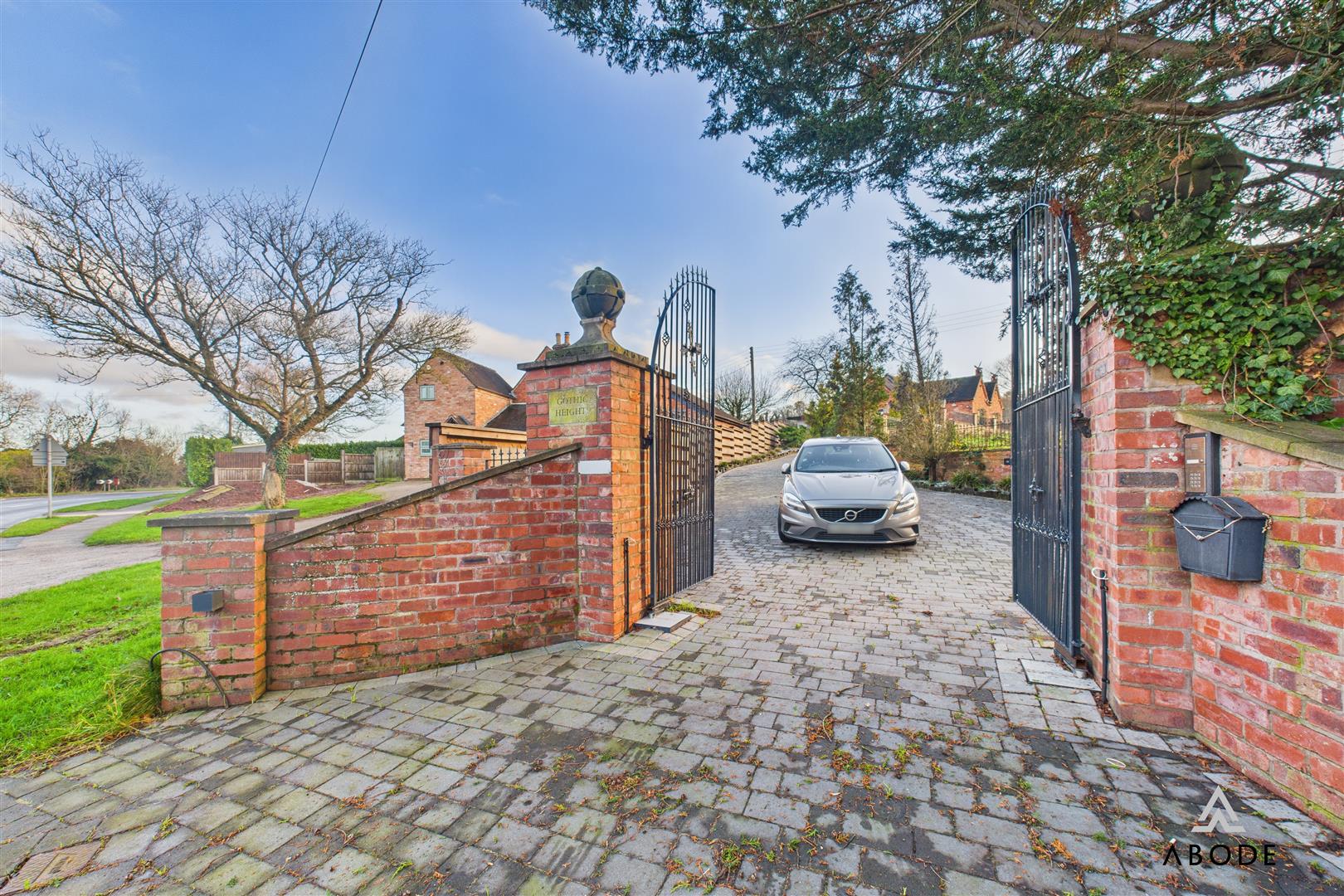 A truly unique and striking Gothic-themed home, occupying an elevated plot with open field views and approached via a large gated entrance. This distinctive property showcases a wealth of character features throughout, including chapel-style doors, gargoyles, bespoke Gothic detailing, and dramatic vaulted ceilings, creating a home of rare individuality and presence.